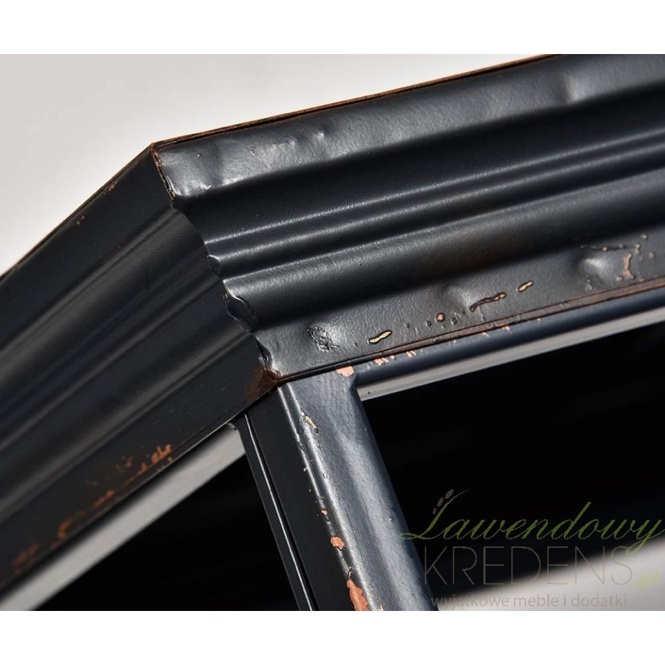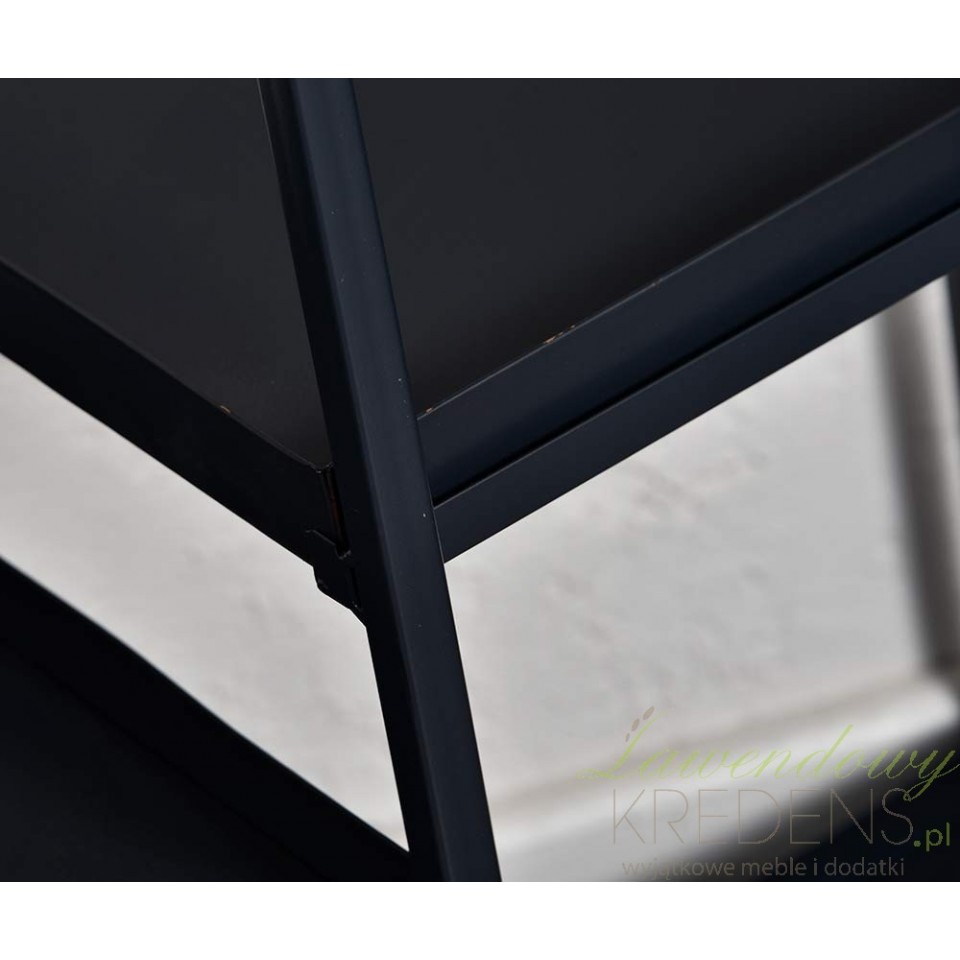 Metalowe elementy, z delikatnymi śladami przemijającego czasu, dodają regałowi niepowtarzalnego uroku vintage. Ich czarna barwa podkreśla kontrast między nowoczesnością a nostalgicznością, tworząc wyjątkową atmosferę loftowego wnętrza.