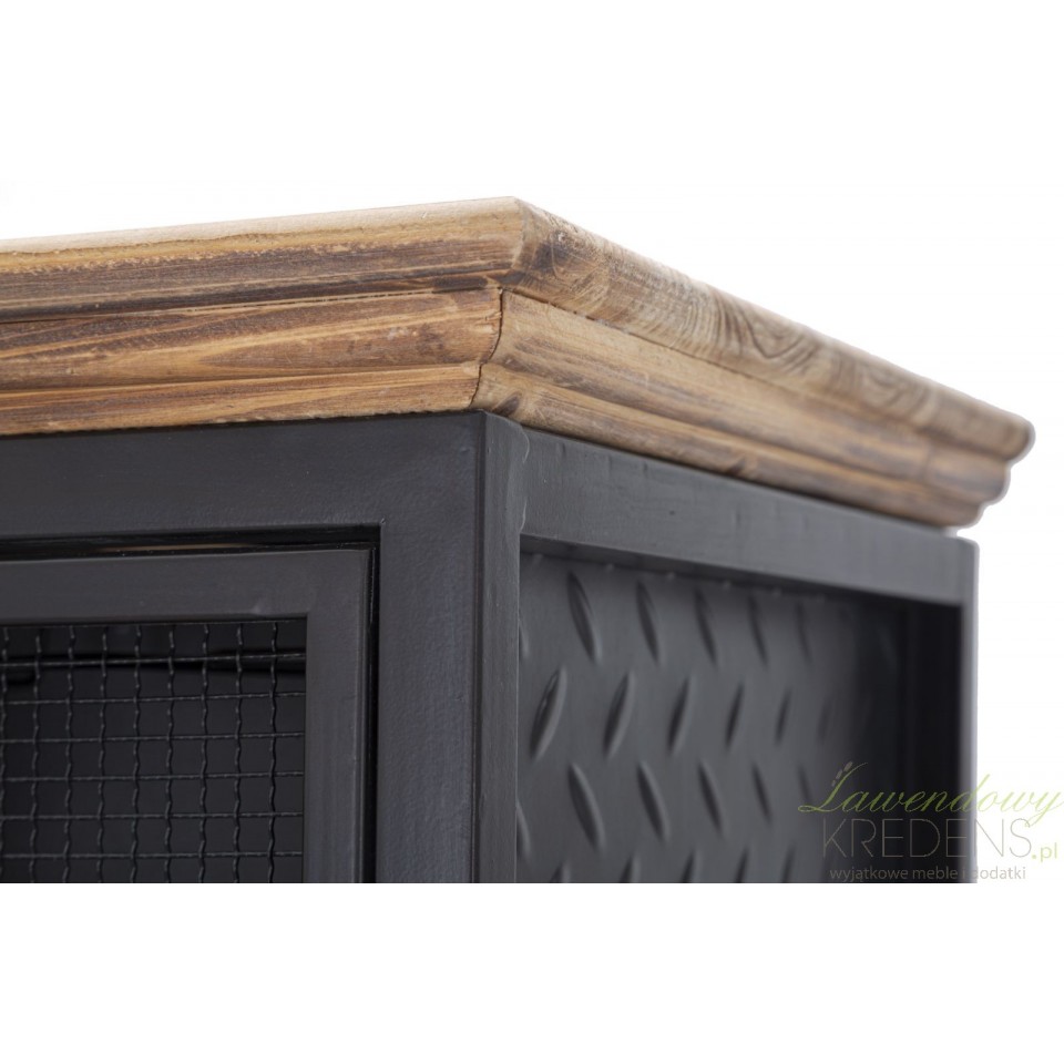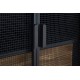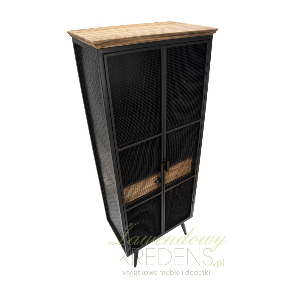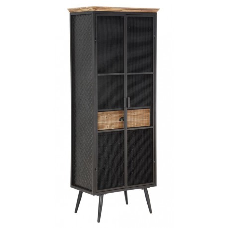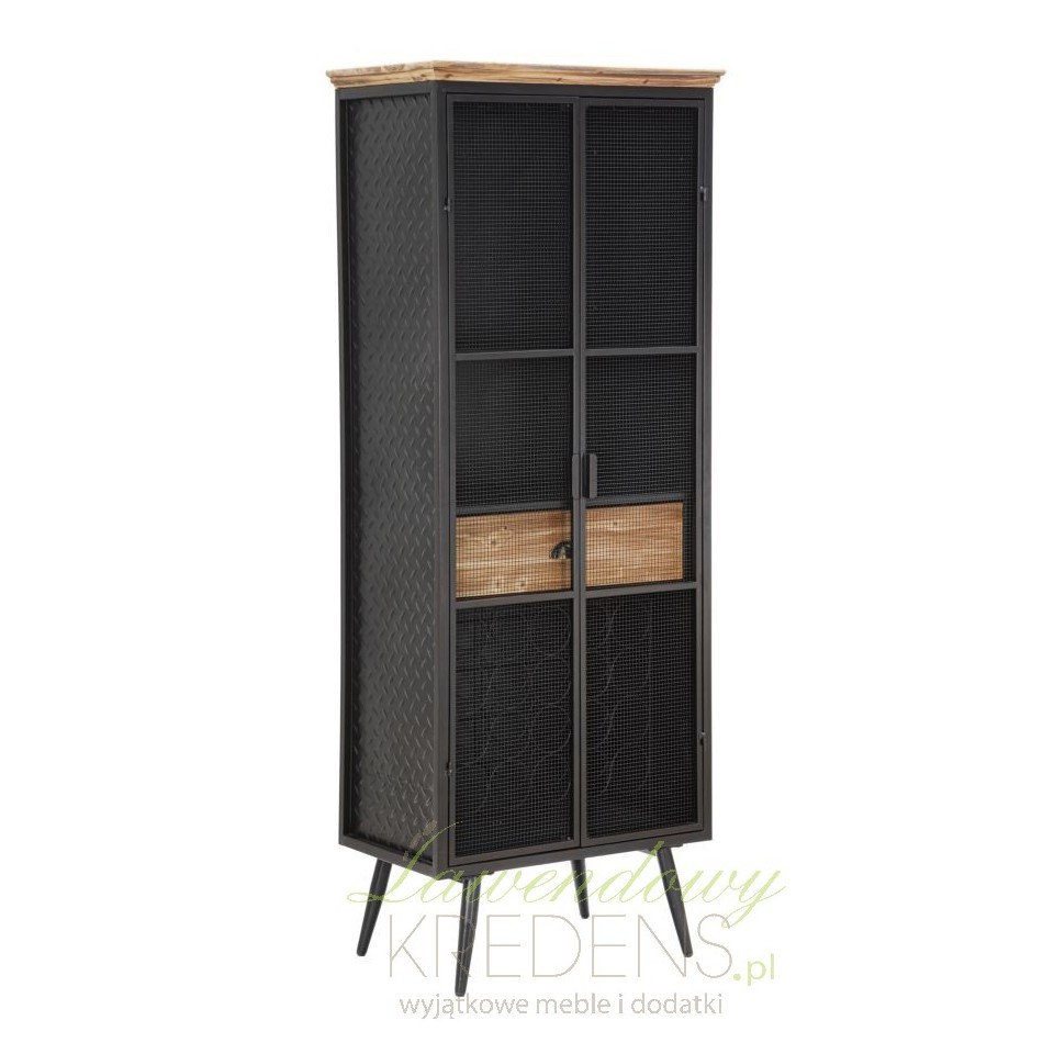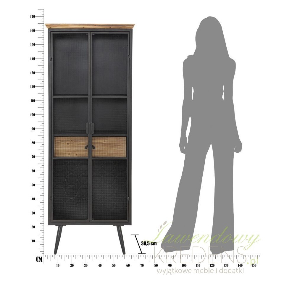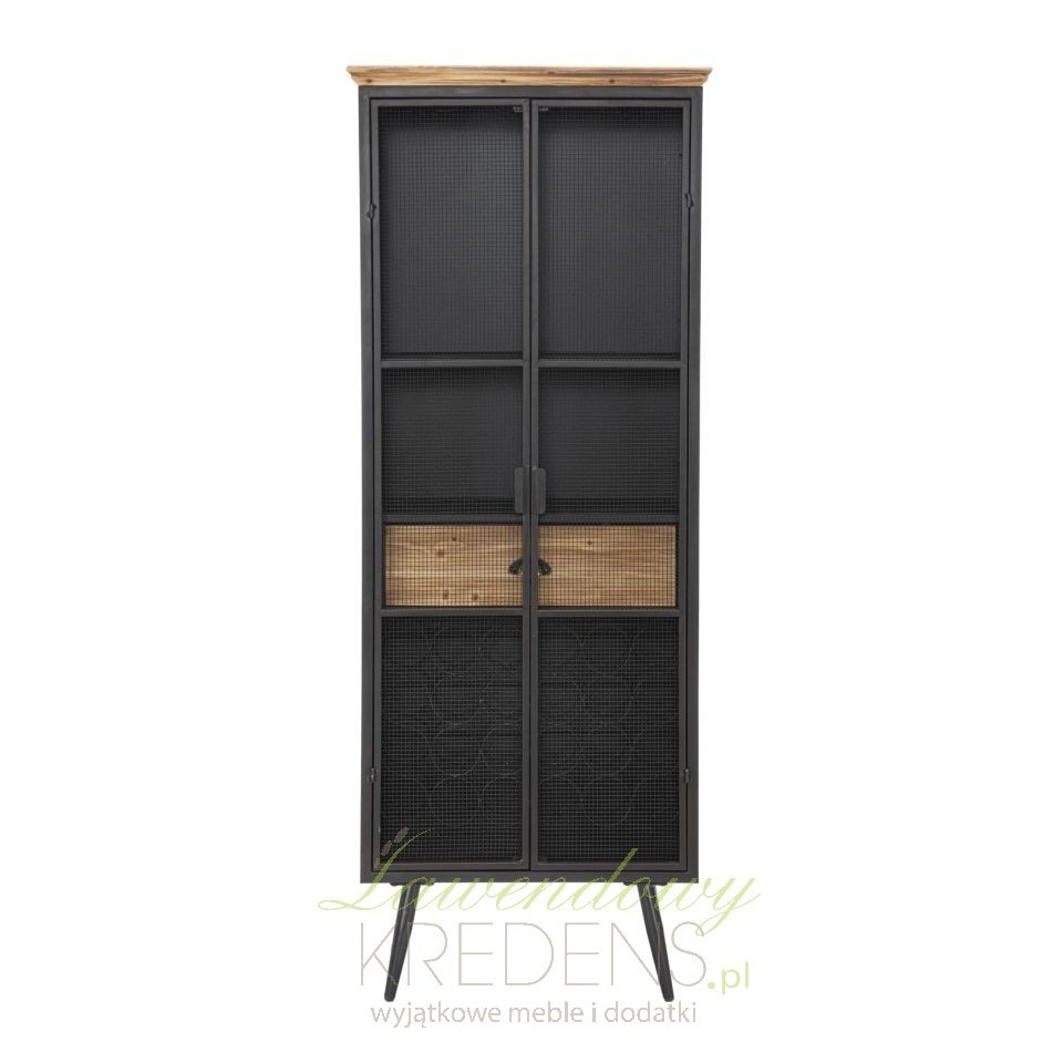 Regał na wino z kolekcji School przypomina elegancką witrynę, która posiada podwójne drzwi z metalowej siatki. We wnętrzu regału, w jego centralnej części znajduje się brązowa szufladka wykonana z drewna, wyposażona w uchwyt z metalu. Poza miejscem na wino, wewnątrz regału znajdują się również półki, na których możesz ustawić kieliszki i lampki do wina. Industrialne meble są wybitnym przykładem ponadczasowego wzornictwa.
