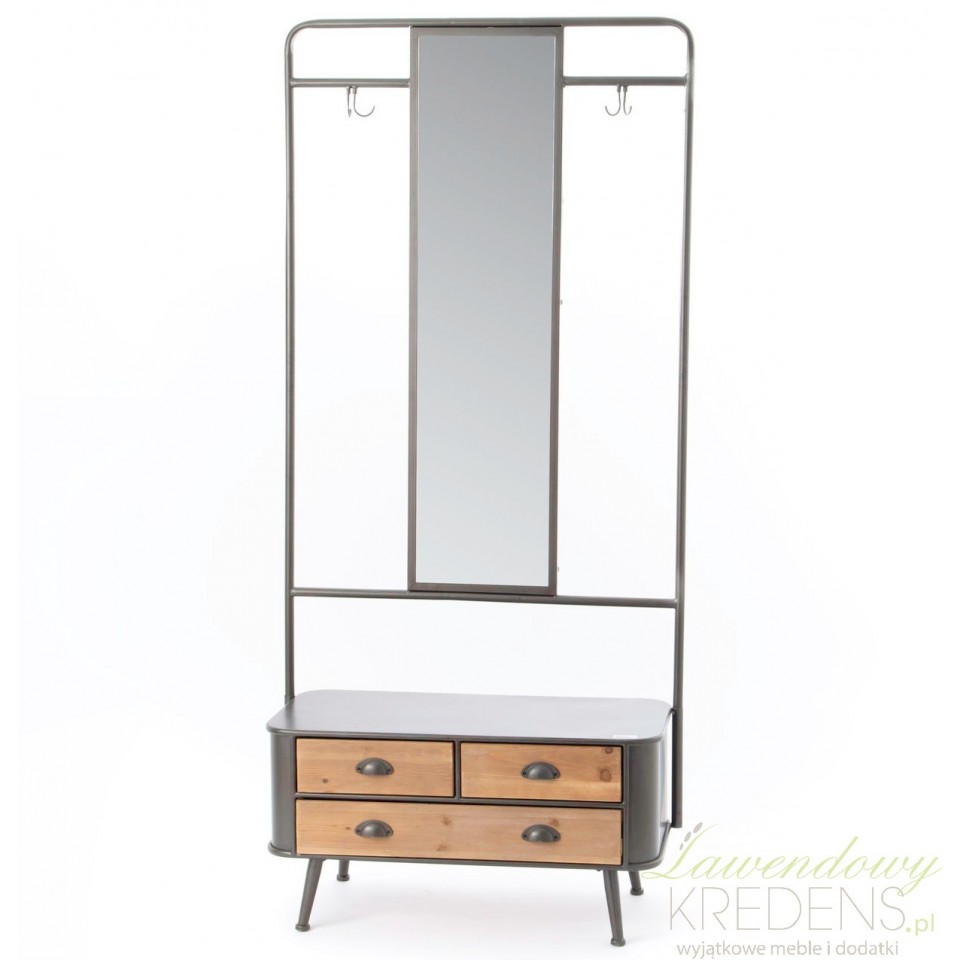 Garderoba w stylu industrialnym z podłużnym lustrem, wieszakami i szufladami to mebel, który bardzo syzbko stanie się jednym z Twoch ulubionych.