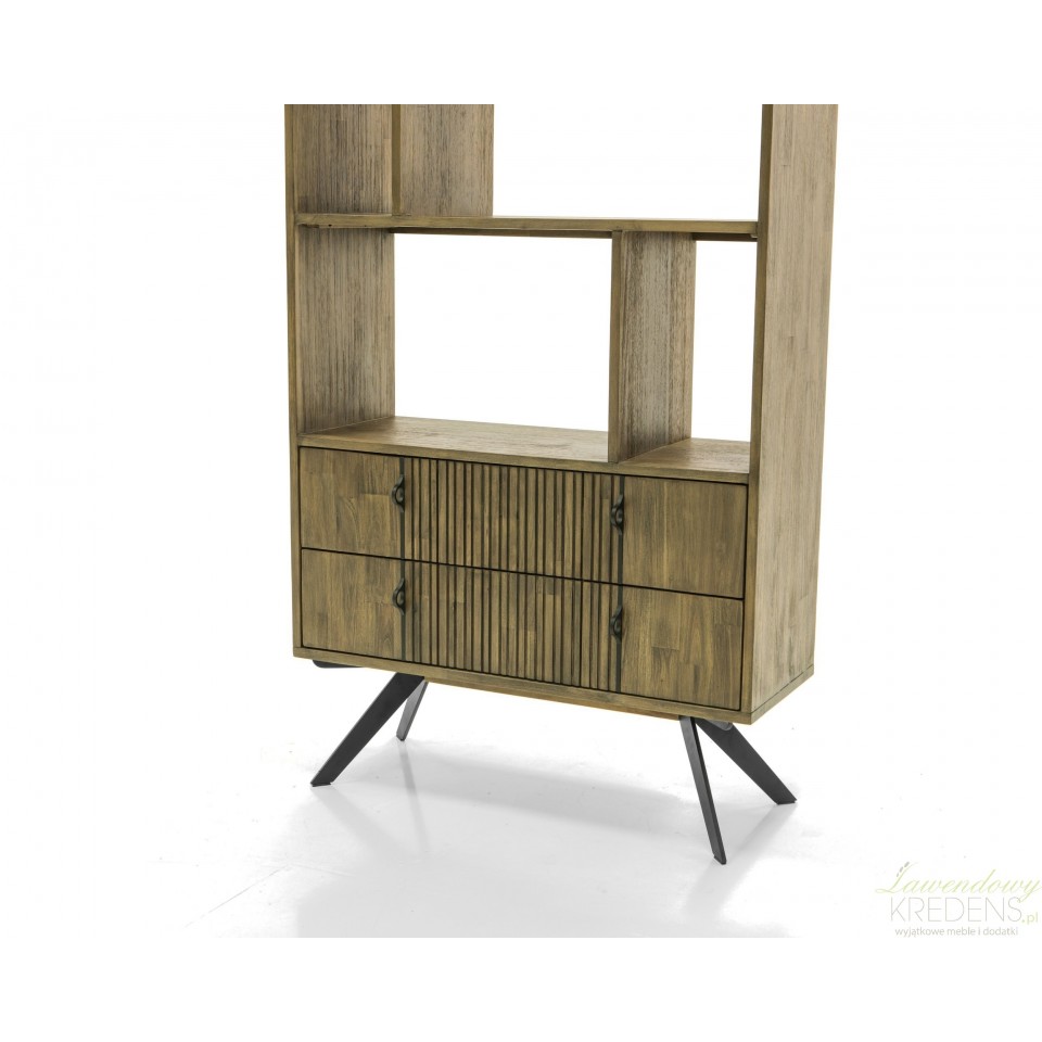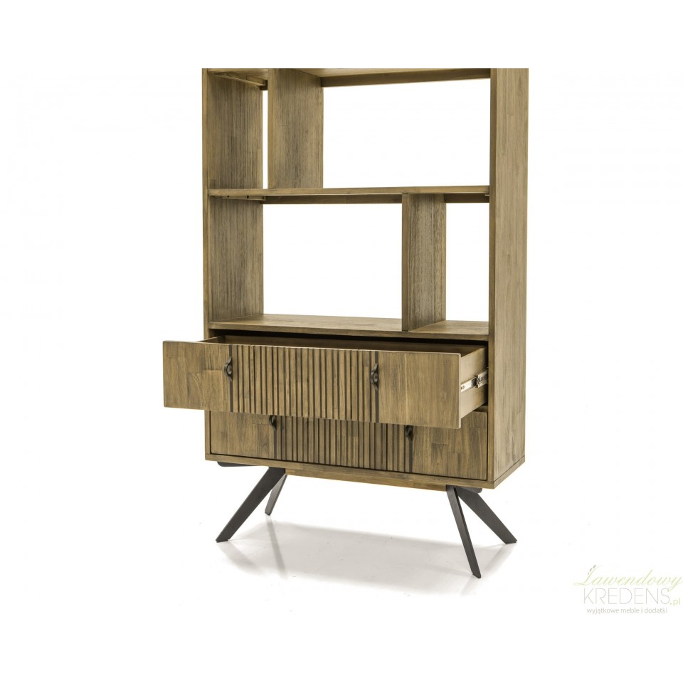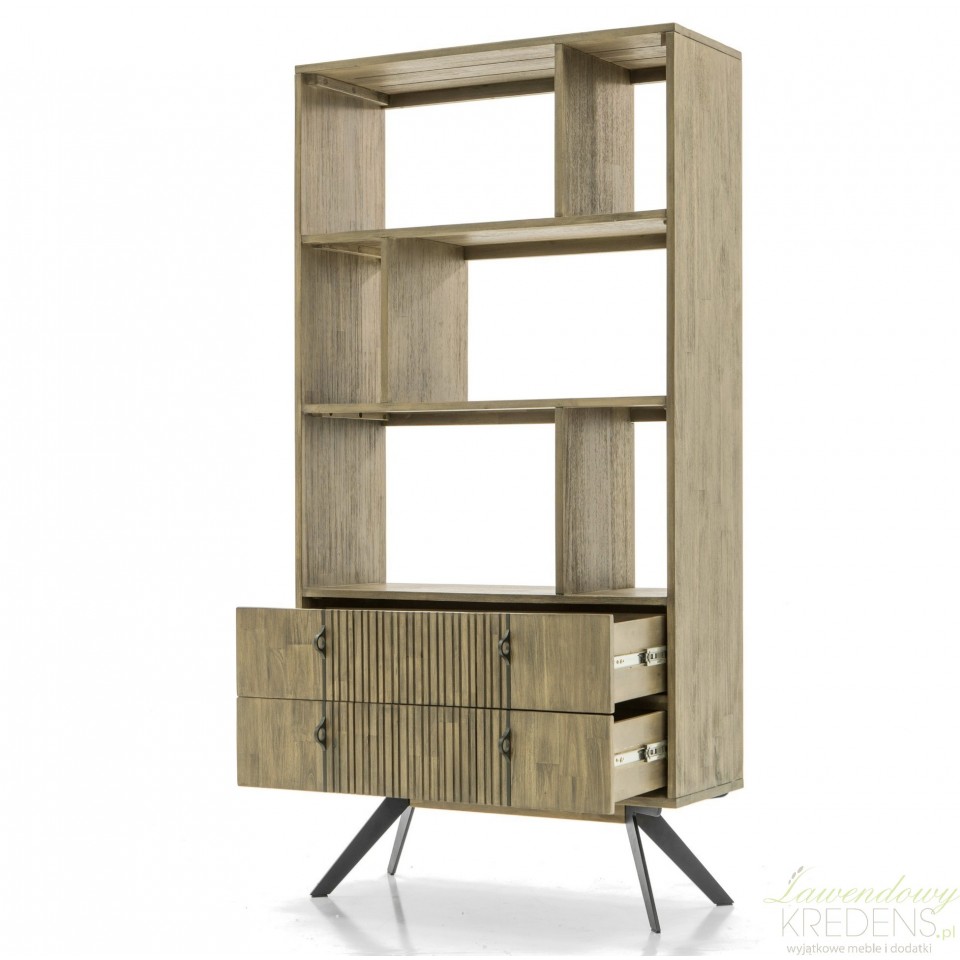 W dolnej części regału znajdują się dwie pojemne szuflady, idealne do przechowywania dokumentów, akcesoriów biurowych czy innych drobiazgów. Ich solidna konstrukcja i wykończenie doskonale komponują się z resztą regału, tworząc spójną całość.