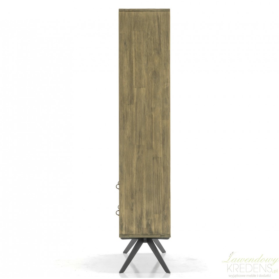 Regał loftowy Massa Livin Hill w jasnym, brązowym odcieniu emanuje charakterem i funkcjonalnością. Jego solidna konstrukcja opiera się na prostych, metalowych nogach, które dodają mu industrialnego uroku i stabilności.