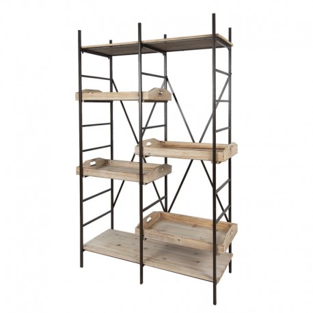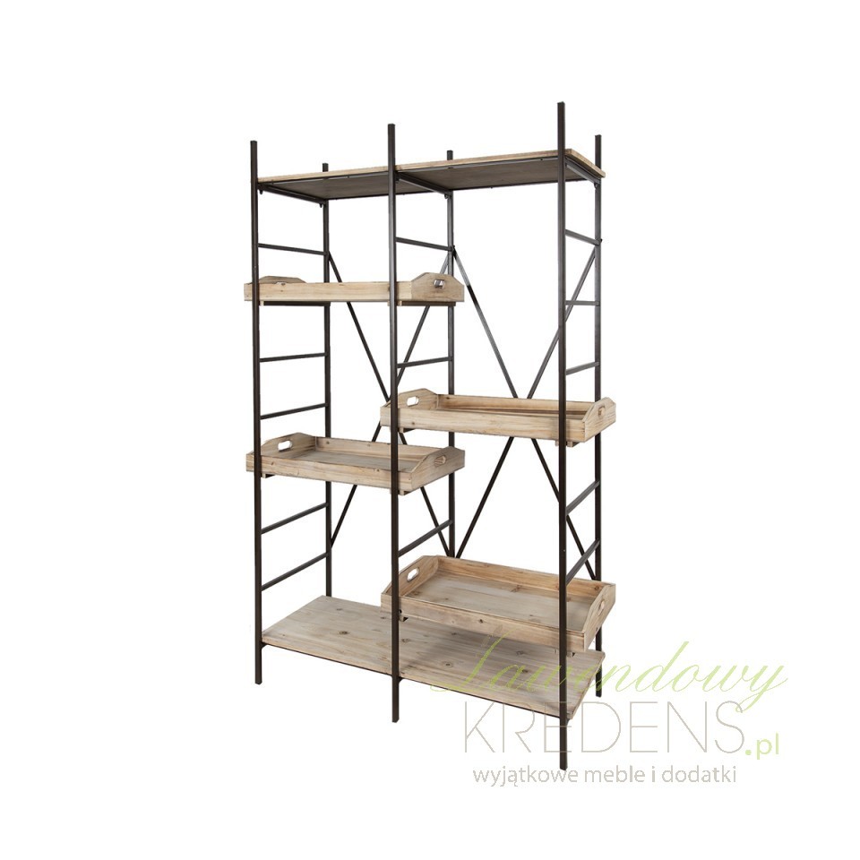 Duży regał industrialny Clayre & Eef to wielopoziomowy mebel z metalową konstrukcją, w którym zamiast tradycyjnych półek zastosowano półki w formie drewnianych tac. Wykonany z wytrzymałych materiałów dla długotrwałego piękna, z pięknym czarnym wykończeniem. Dbaj o niego, przecierając poszczególne elementy wilgotną ściereczką. Takie regały industrialne to skarbnica wielofunkcyjności i mnóstwa możliwości aranżacyjnych. Nie zwlekaj dłużej i zamów meble w stylu industrialnym od holenderskiej marki!