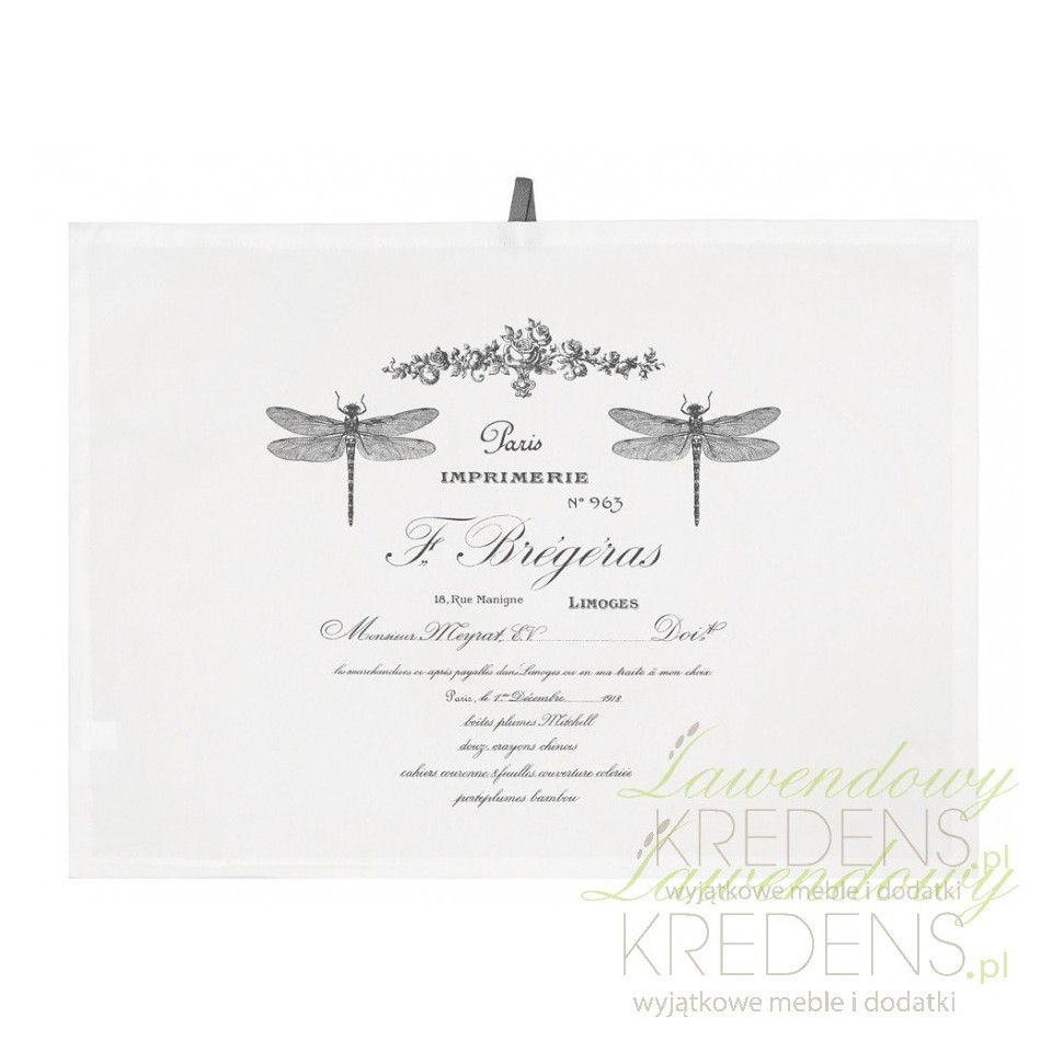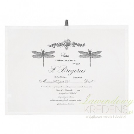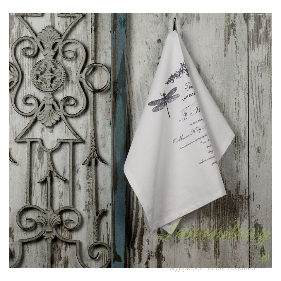 Prostokątne, wykonane z dobrego gatunku bawełny, ściereczki kuchenne to dodatki w stylu prowansalskim, które swój wdzięk zawdzięczają francuskim nadrukom na frontowej stronie. Na bawełnianej powierzchni zobaczyć można dwie duże ważki i napisy w języku francuskim. Taka forma przypadnie do gustu każdemu!