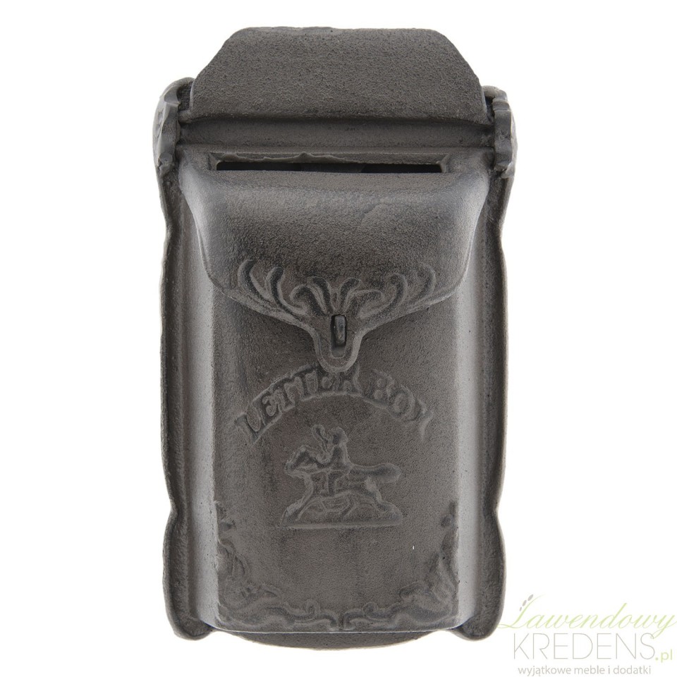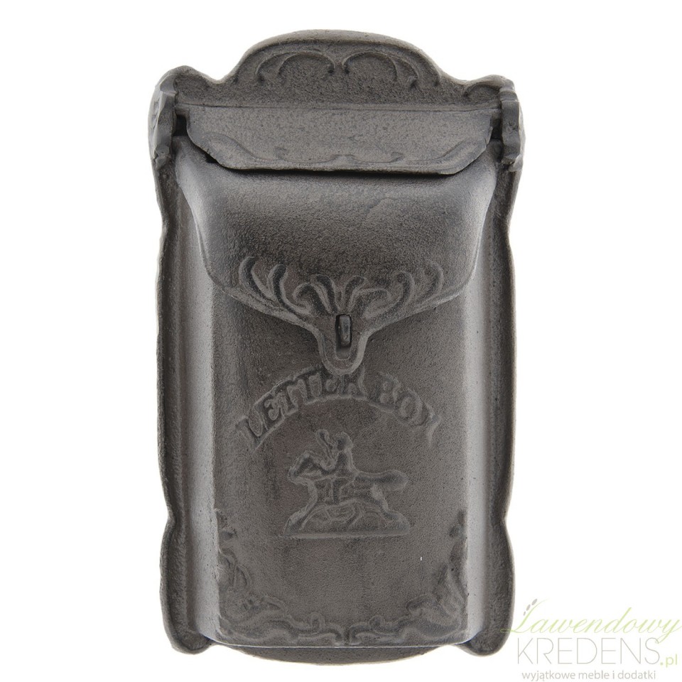 Oryginalna skrzynka na listy z dekoracyjnymi ufromowaniami i z ozdobnym porożem jelenia na przedniej ścianie oraz z napisami. Metalowa, mająca brązowy kolor genialnie zaprezentuje się na murowanej i betonowej ścianie. Podobne, równie piękne skrzynki na listy znajdziesz w ofercie marki Clayre&Eef. Zapraszamy po więcej praktycznych dodatków do domu na naszą stronę!