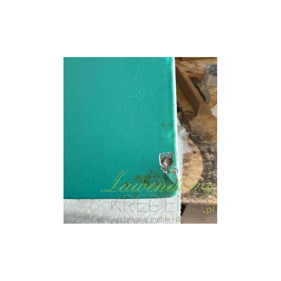 SKRZYNKA PRZECENIONA W ZWIĄZKU Z WADĄ NA ROGU DASZKU WIDOCZNĄ NA DRUGIM I TRZECIM ZDJĘCIU.