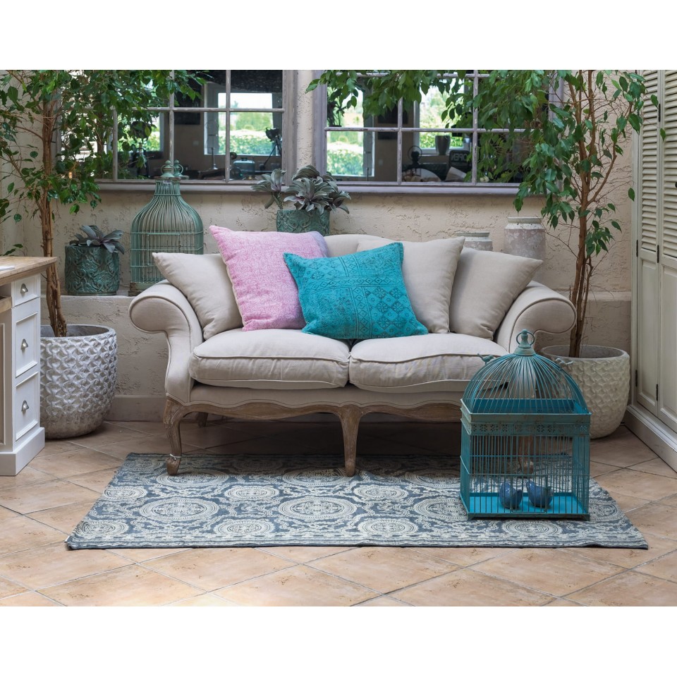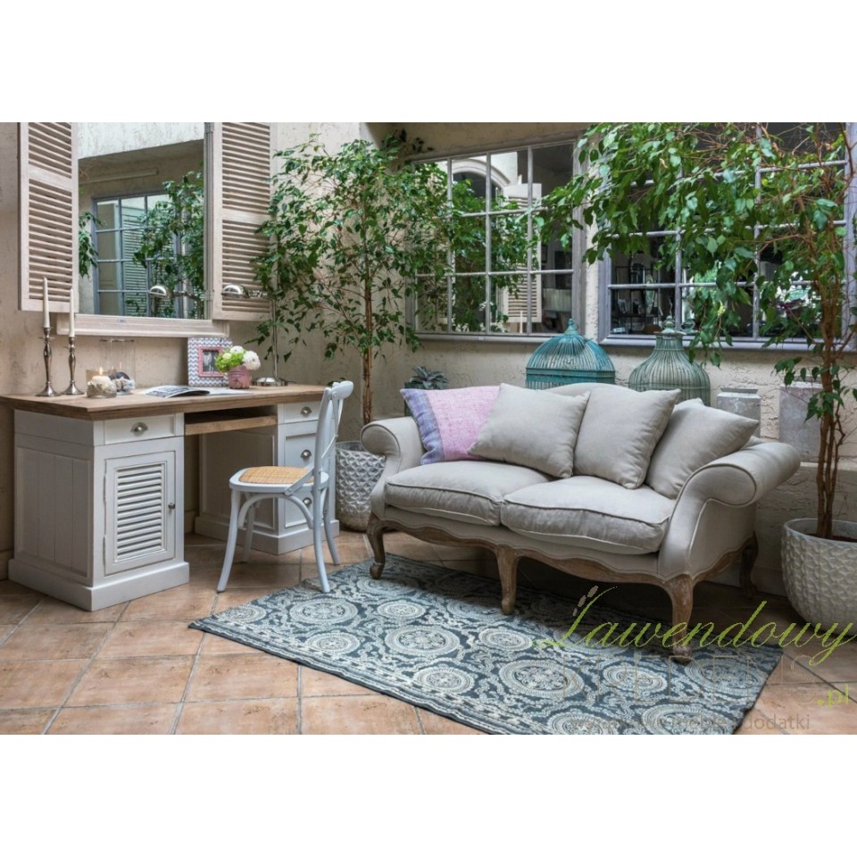 Sofa doskonale prezentuje się w salonach urządzonych w stylu prowansalskim, rustykalnym i ludwikowskim. Pięknie komponuje się z drewnianymi stolikami, pastelowymi dodatkami i naturalnymi tkaninami.