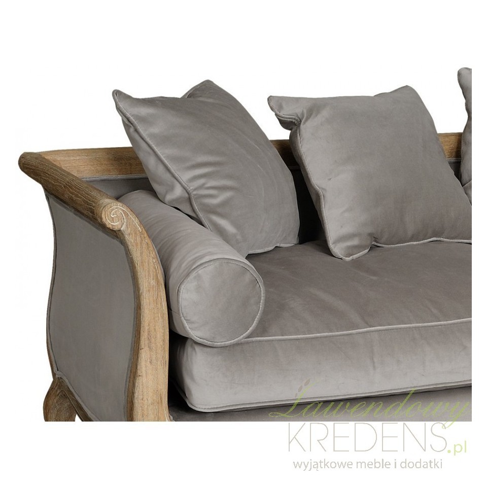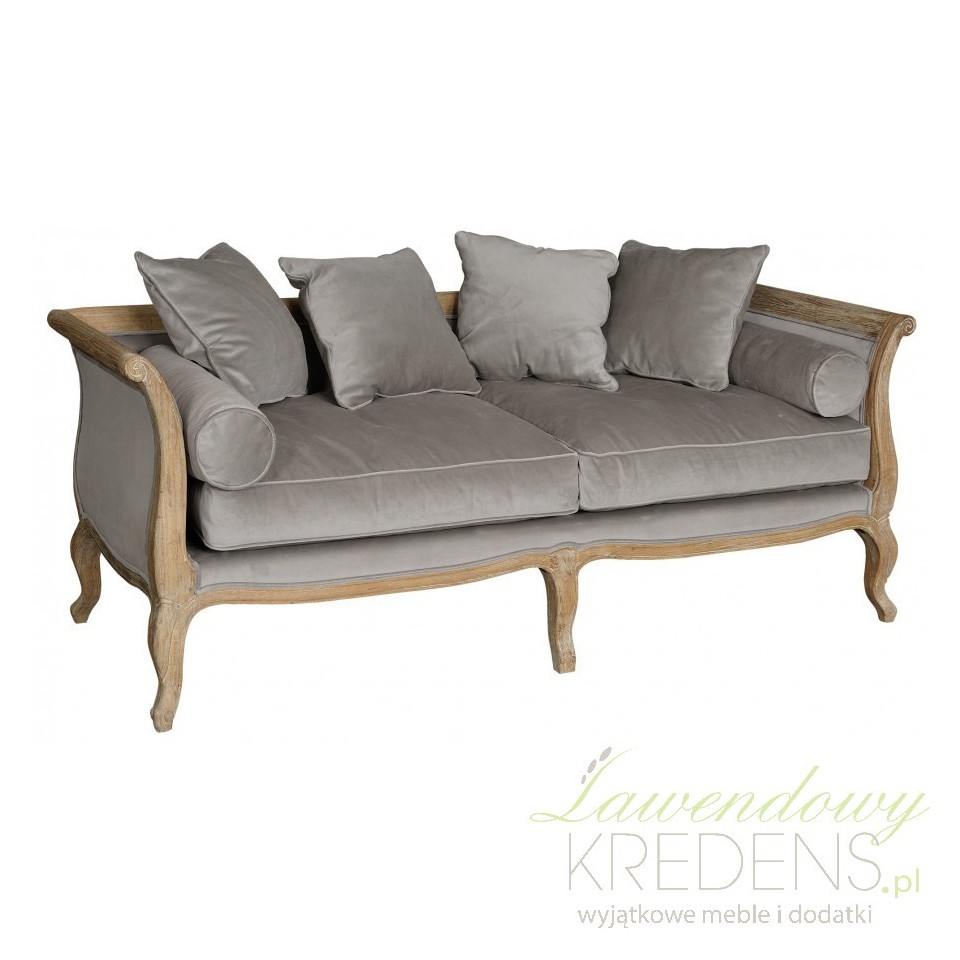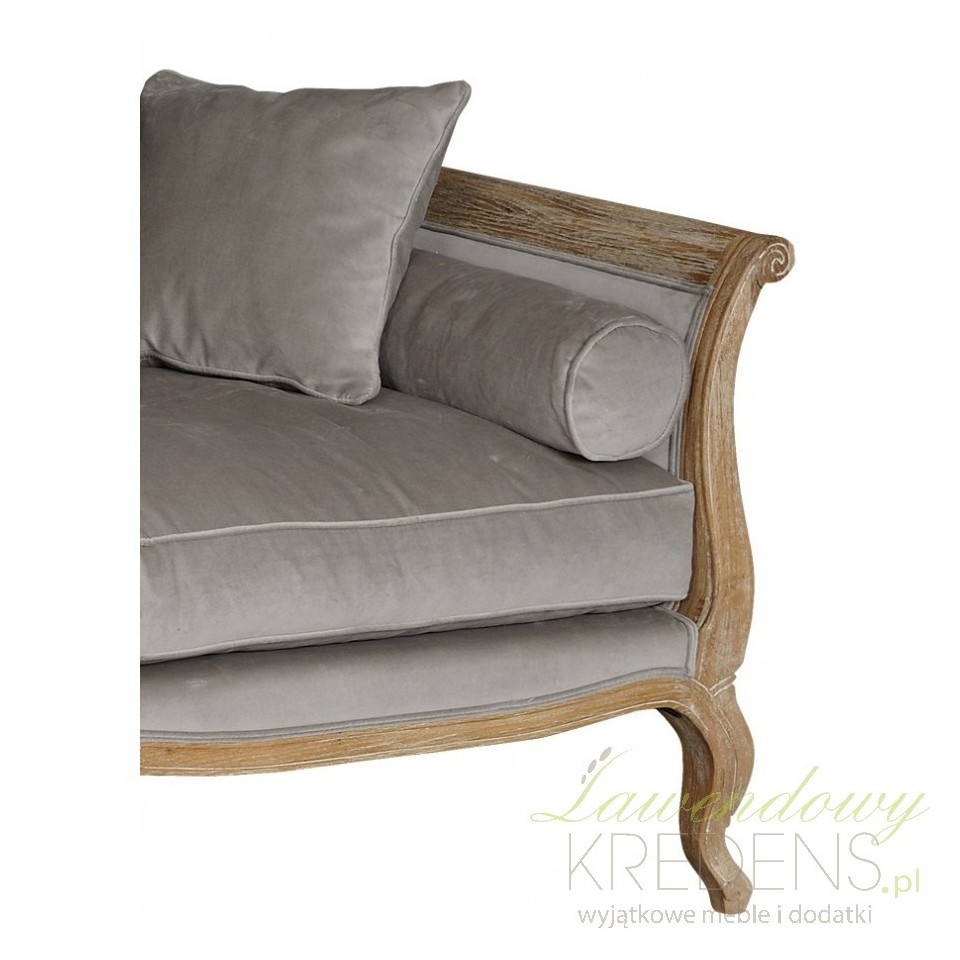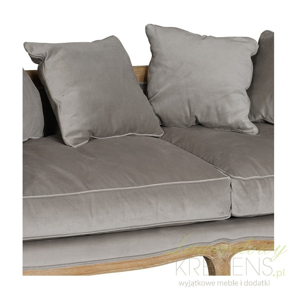 Sofa Classic Belldeco to mebel w stylu prowansalskim o bardzo dostojnym i eleganckim kształcie. Sofa Classic obita jest szarym aksamitem, a jej rama wykonana jest ze szczotkowanego i bielonego drewna dębowego. Siedzisko sofy to dwie duże, bardzo wygodne poduchy. Cztery kwadratowe poduszki dołączone do Sofy Classic służą do oparcia się, natomiast dwie poduszki w kształcie walca są wygodnymi podłokietnikami.