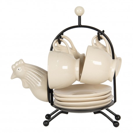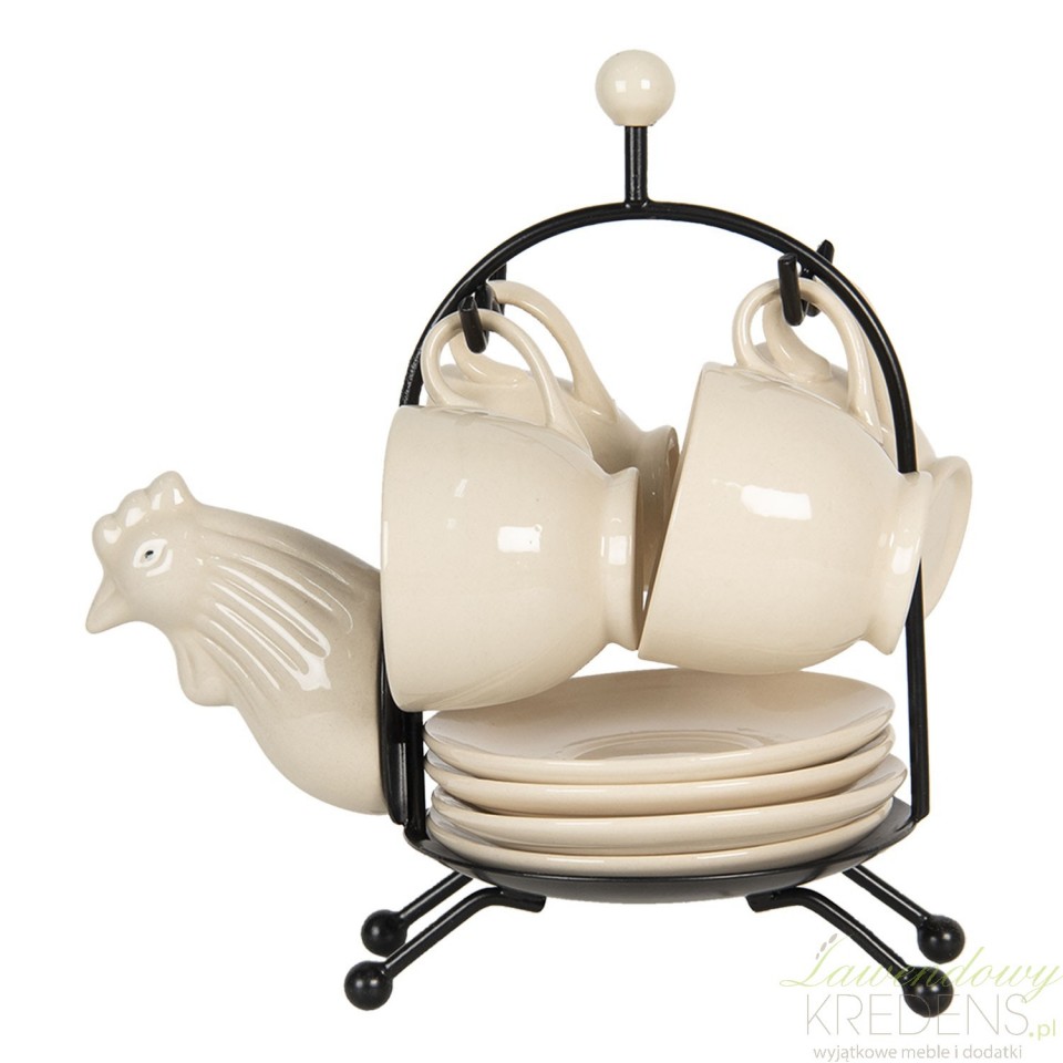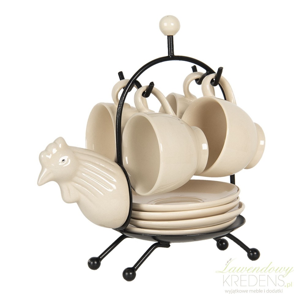 Filiżanki Na Stojaku w Stylu Prowansalskim z Kurą B Clayre & Eef