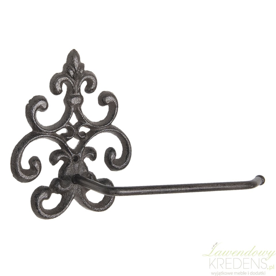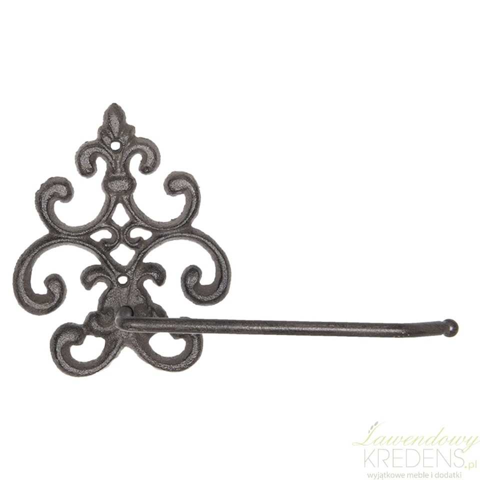 Przedstawiamy doskonale pasujący do łazienki i toalety w stylu prowansalskim, vintage i retro wieszak na papier toaletowy. Wykonany z metalu w kolorze ciemnobrązowym wieszak prowansalski charakteryzuje się prostotą, solidnością i ponadczasowym wzornictwem. Wieszak łazienkowy składa się z podstawy w kształcie lilijki i drążka na rolkę papieru. Spraw, by Twoja łazienka wyglądała kapitalnie i zamów dodatki do łazienki od Clayre&Eef.