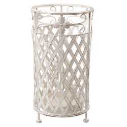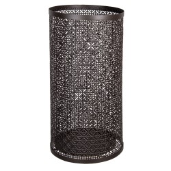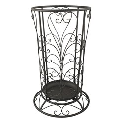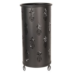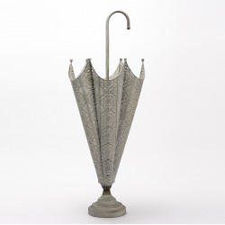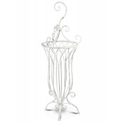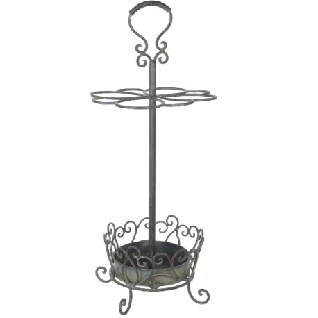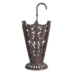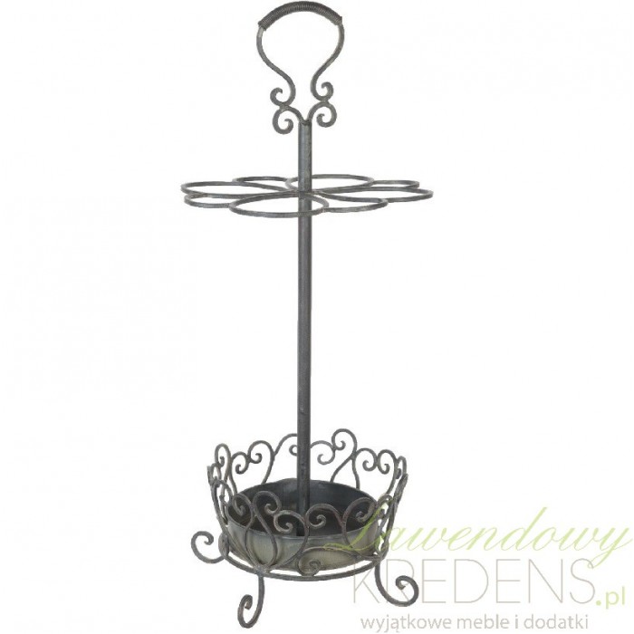Metalowy stojak na parasole, pomieści ich aż cztery, dzięki ozdobnym otworom umieszczonych u góry. Stojak ten posiada także wyjątkowo stylizowany dół.