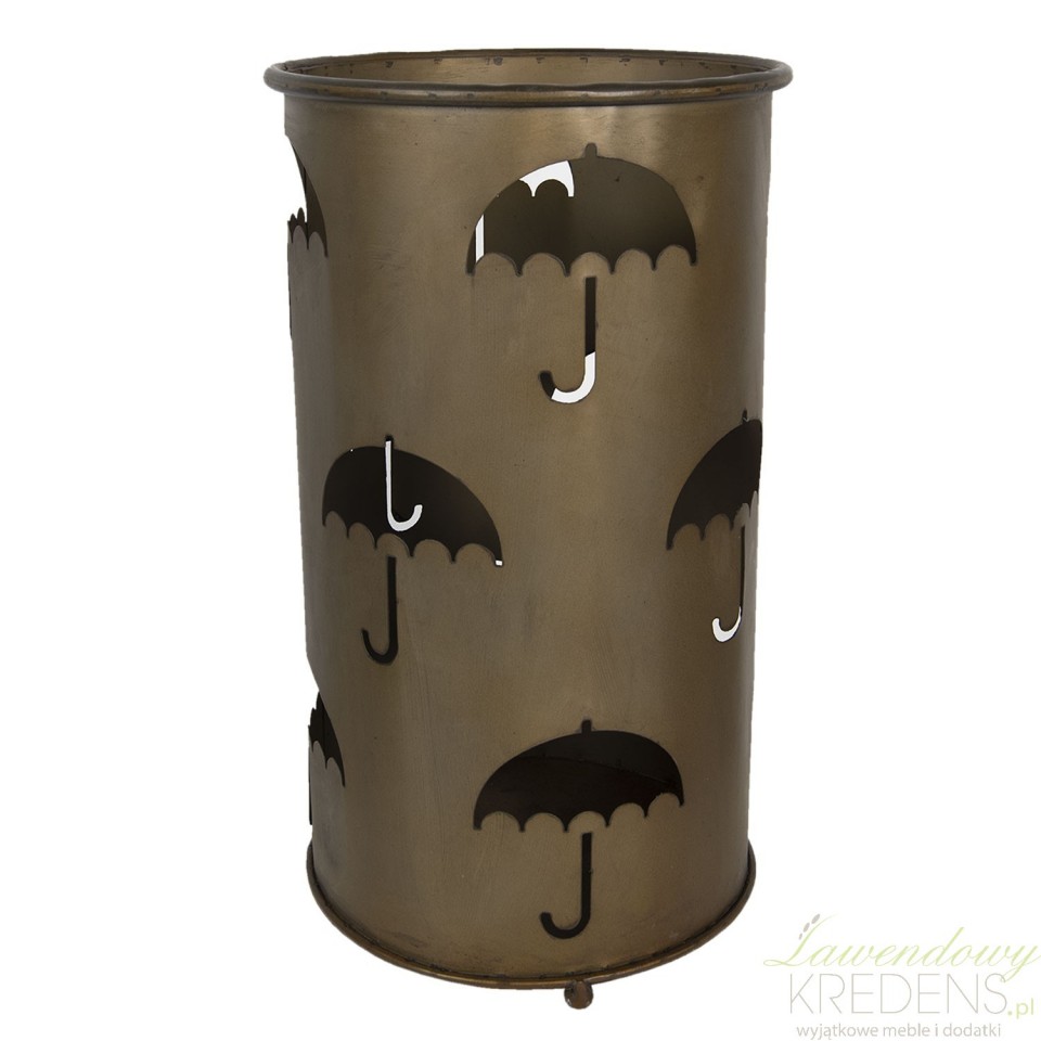 Metalowy stojak na parasole pochodzi z kolekcji holenderskiej marki Clayre&Eef. Sprawdzi się w każdym przedpokoju oraz w poczekalniach i biurach. Wykonany w kolorze brązowym i zdobiony czarnymi parasolkami od razu pozwoli gościom znaleźć miejsce na parasol. Ciekawy design i stabilna forma stojaka to jego największe zalety.