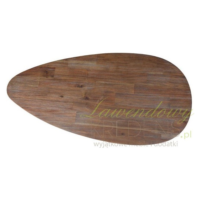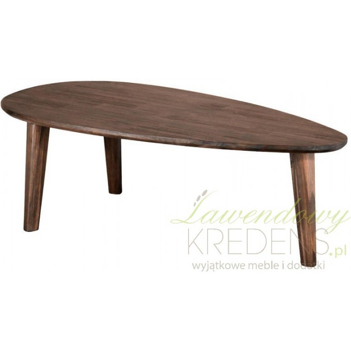 Klasyczny a jednocześnie oryginalny stolik kawowy to mebel łączący w sobie ciemny kolor brązu i niespotykany kształt.