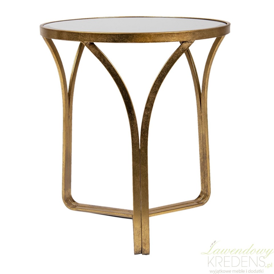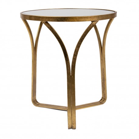 Złoty stolik z lustrzanym blatem o średnicy 54 centymetry może być wykorzystywany jako mały stolik koktajlowy lub kawowy, jest łatwy do przenoszenia i z pewnością będzie idealnym towarzyszem Twojej sofy lub fotela. Okrągły, lustrzany blat to doskonałe miejsce, na którym można postawić napoje lub przekąski dla gości. Trwała i stylowa, metalowa podstawa w kolorze starego złota dodaje mu szyku i wdzięku. Złote meble, w tym stoliki kawowe znajdziesz w ofercie holenderskiej marki Clayre & Eef.