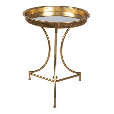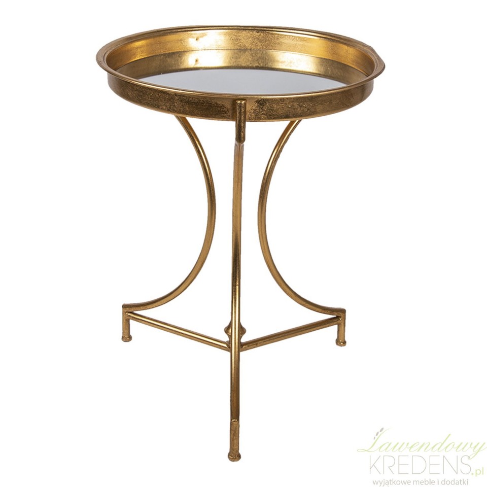 Złoty stolik z lustrzanym blatem od Clayre & Eef ma niespotykaną, ale nie mniej solidną podstawę wykonaną z metalu. Lustrzany, lśniący blat, który stanowi zwieńczenie stolika, zwraca uwagę na elementy dekoracyjne umieszczone na jego powierzchni. Mebel został zaprojektowany z myślą o aranżacjach eleganckich, w których liczą się detale i przykuwające uwagę elementy wyposażenia wnętrza. Złote stoliki kawowe i inne, złote meble do salonu to część oferty holenderskiej marki -zobacz je wszystkie już teraz w naszym sklepie!