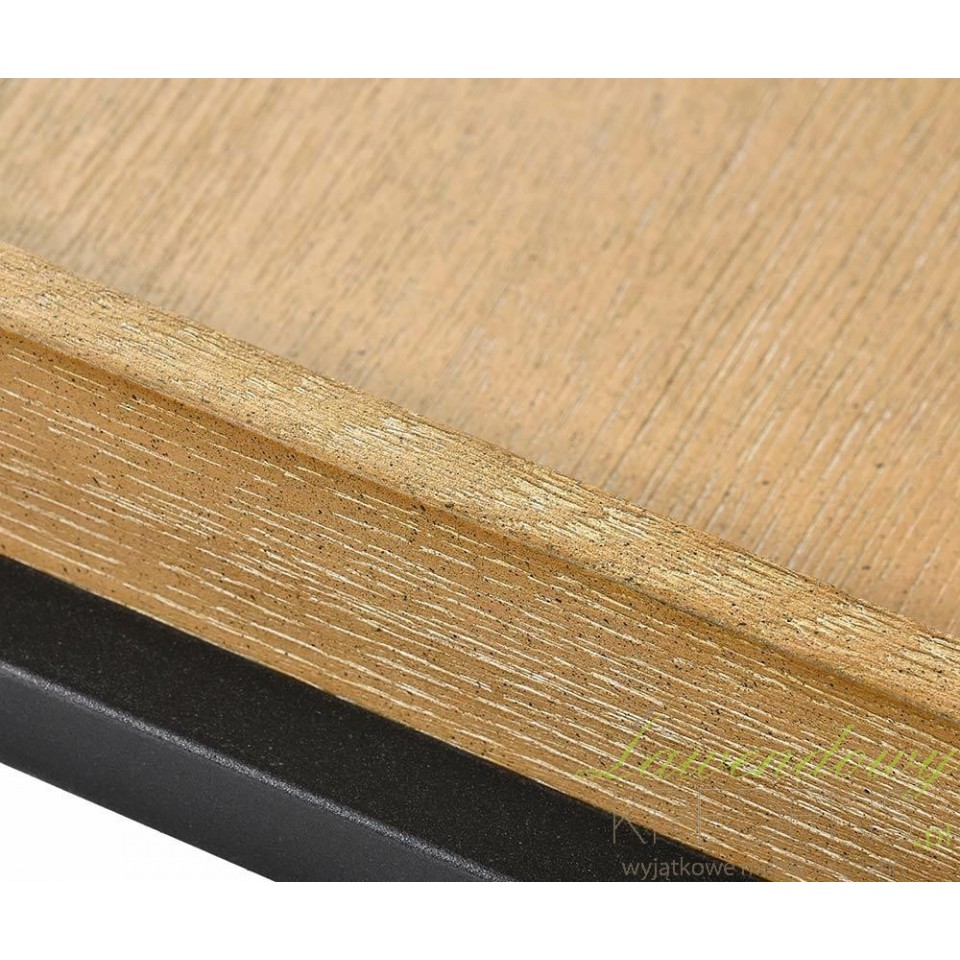 Naturalny brąz blatu ociepla wnętrze, a czarna metalowa rama dodaje mu wyrazistości. Taki kontrast sprawia, że stolik staje się elementem, który nadaje wnętrzu rytmu i struktury, nie przytłaczając go swoją formą. To idealny wybór zarówno do przestronnych loftów, jak i do nowoczesnych apartamentów.
