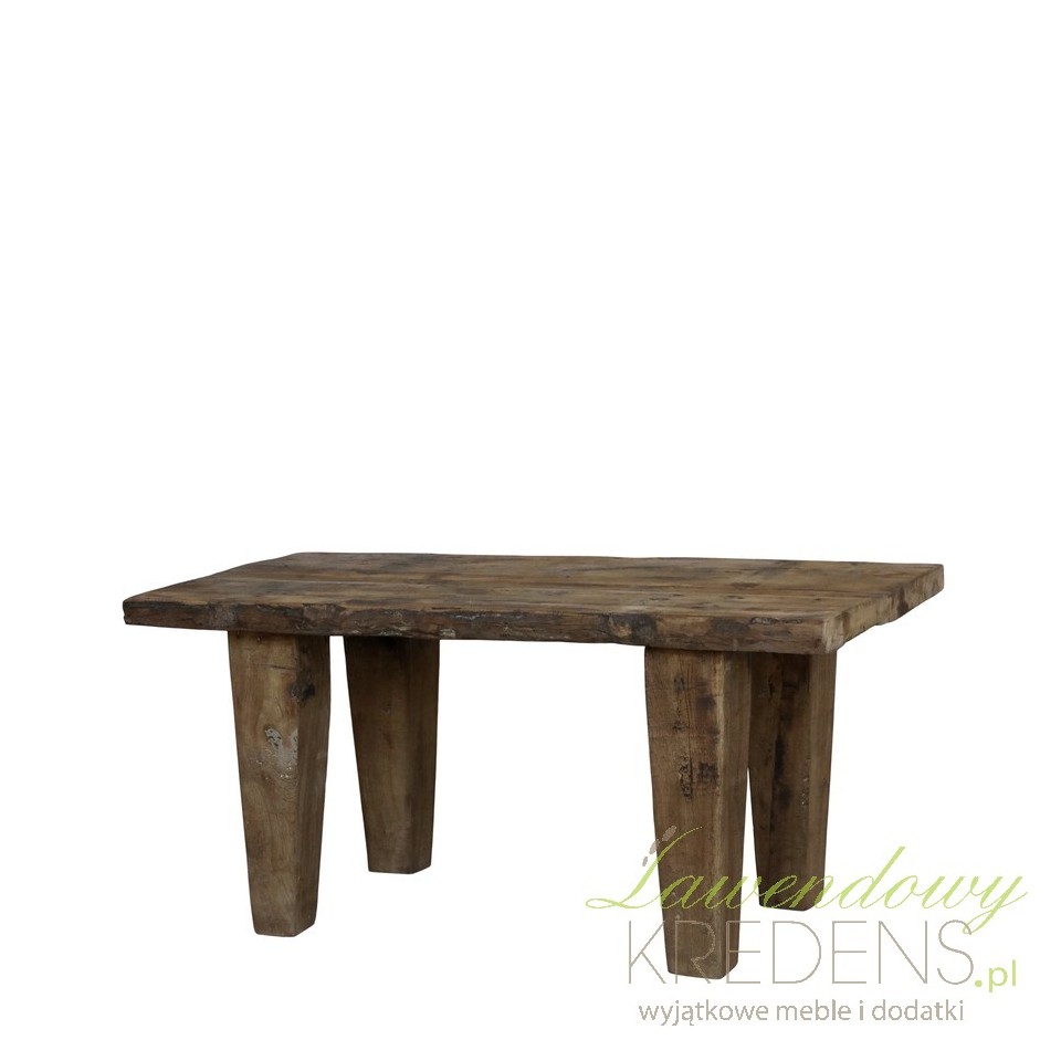 Ten prostokątny stolik o wymiarach 90 cm szerokości, 45 cm głębokości i 40 cm wysokości został stworzony z myślą o wnętrzach, które cenią autentyczność, spokój i ponadczasowy design. Wykonany z drewna pochodzącego z odzysku, nosi ślady swojego poprzedniego życia – widoczne słoje, drobne nierówności, naturalne przebarwienia i sęki opowiadają historię, której nie sposób powielić. Każdy egzemplarz różni się delikatnie od pozostałych, co czyni go jedynym w swoim rodzaju meblem – tak jak wnętrze, w którym się znajdzie.