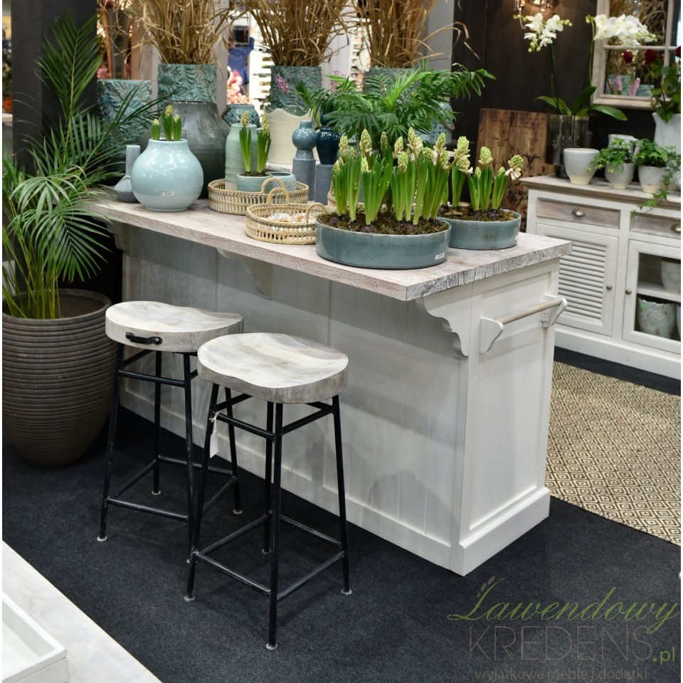 Klasyczna forma, jasna kolorystyka i subtelne przecierane detale sprawiają, że stołek doskonale komponuje się zarówno z wnętrzami w stylu prowansalskim, jak i z aranżacjami w duchu Hamptons czy skandynawskim. To uniwersalny mebel, który sprawdzi się w wielu przestrzeniach – od kuchni z wyspą, przez jadalnię, po otwartą strefę dzienną.