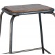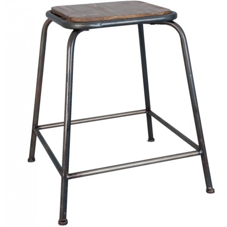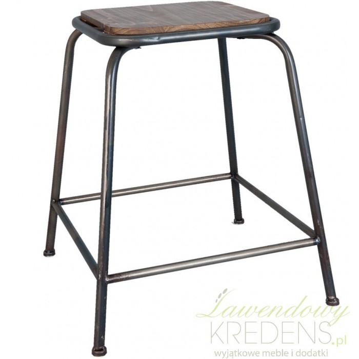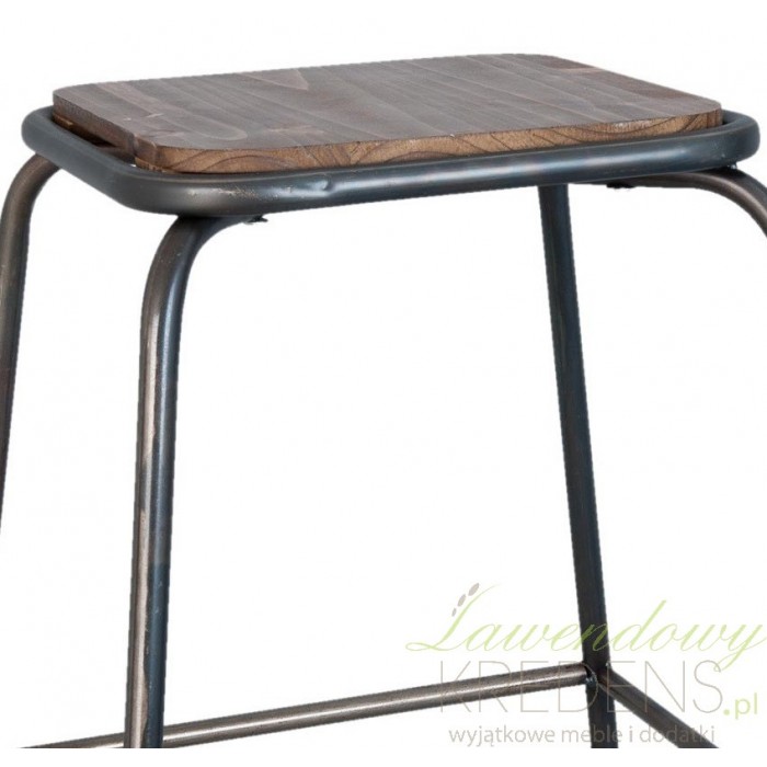 Elegancki, prostej konstrukcji stołek industrialny na czterech nogach z polerowanym, drewnianym siedziskiem!