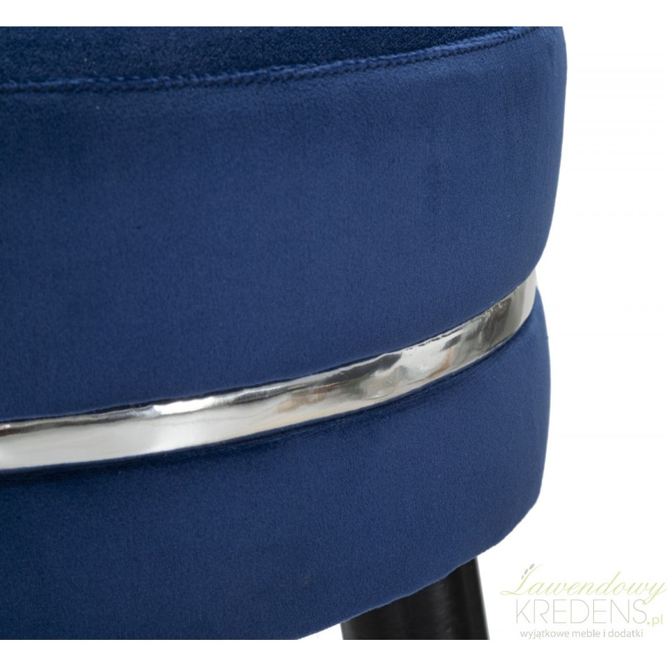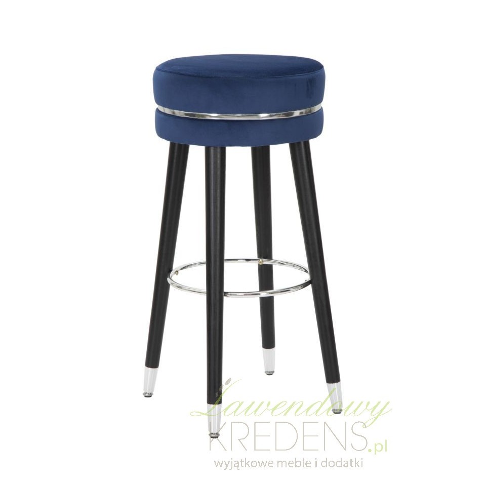 Ten luksusowy stołek barowy znacząco wpłynie na wystrój Twojego wnętrza, przyprawiając go szczyptą elegancji i paryskiego szyku. Stołek w stylu glamour z kolekcji Paris posiada granatowe siedzisko ozdobione srebrnym pierścieniem oraz długie nogi drewniane malowane na czarno. Takie zestawienie kształtów i kolorów to wizytówka tej kolekcji elementów wyposażenia wnętrza od Mauro Ferretti. Meble glamour to pewność, że Twoja aranżacja wygląda czarująco!