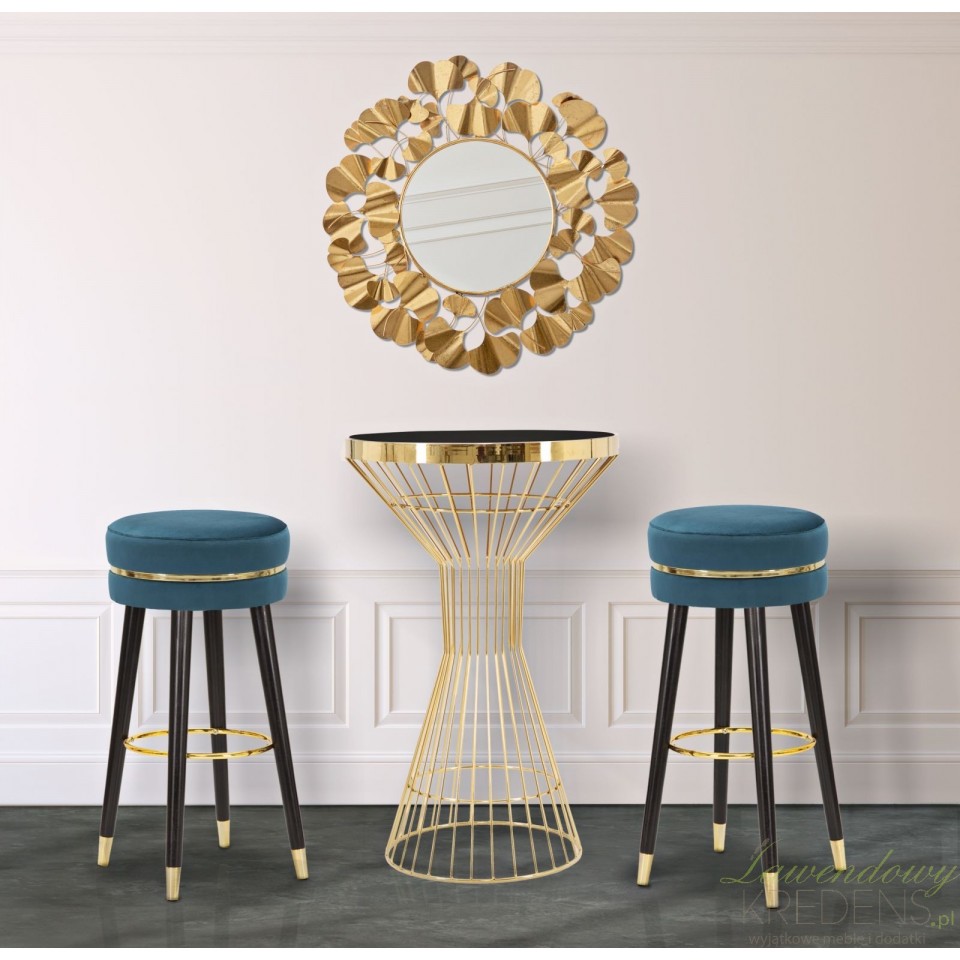 Stołek barowy glamour Paris Ottanio ma bardzo szczególny charakter – to wszystko za sprawą prostej formy i przykuwających uwagę detali w kolorze złota. Elegancki mebel składa się z długich, drewnianych nóg i okrągłego siedziska tapicerowanego miękkim welurem w kolorze turkusowym. Ma przyjemnie gładkie wykończenie. Stołki barowe z tej kolekcji wspaniale prezentują się przy wyspie kuchennej lub przed toaletką. To praktyczne krzesło można również postawić przy barze w stylowej knajpie. Wybierz meble glamour i nadaj swoim wnętrzom indywidualny i ponadczasowy charakter!