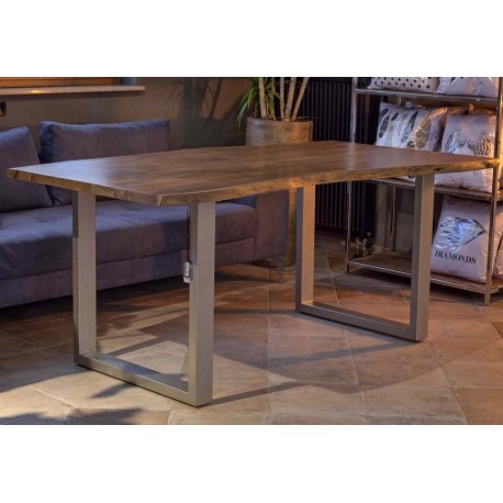 Solidne i gustowne stoły metalowe będą idealnym dodatkiem zarówno do pokoju dziennego jak i salonu. W naszej ofercie znajdziesz stół metalowy od firmy aluro, który jest kwintesencją dobrego stylu. Stół wykonany jest z dwóch surowców, drewna akacji oraz metalu w kolorze antycznego srebra i brązu. Ciekawym elementem są pofalowane w sposób naturalny boki blatu, które nadają mu charakteru oraz grube nogi, dzięki którym stół jest stabilny!