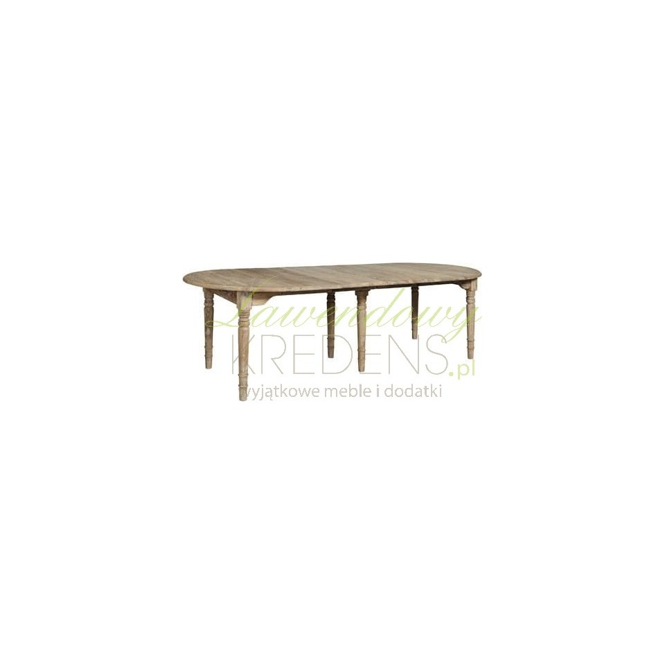 Duży stół Belldeco wykonany ze szczotkowanego drewna dębowego. Jest bardzo funkcjonalny, ponieważ jest rozkładany o cztery dodatkowe blaty o szerokości 40cm.
