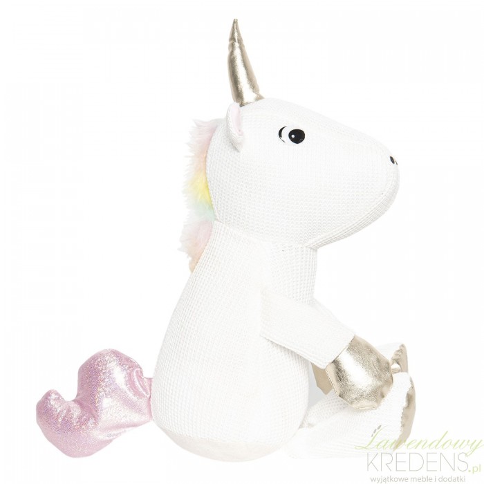 Poznaj najlepszy sposób na szybką odmianę wnętrza i wzmocnienie jego funkcjonalności. Wybierz stoper do drzwi w kształcie jednorożca. Ogranicznik do drzwi należy do gamy produktów z kolekcji Clayre&Eef, ma biały kolor i charakterystyczny, złoty róg. Stopery do drzwi doskonale spełniają swoje zadanie wykorzystane w pokoju dziecka lub w salonie.