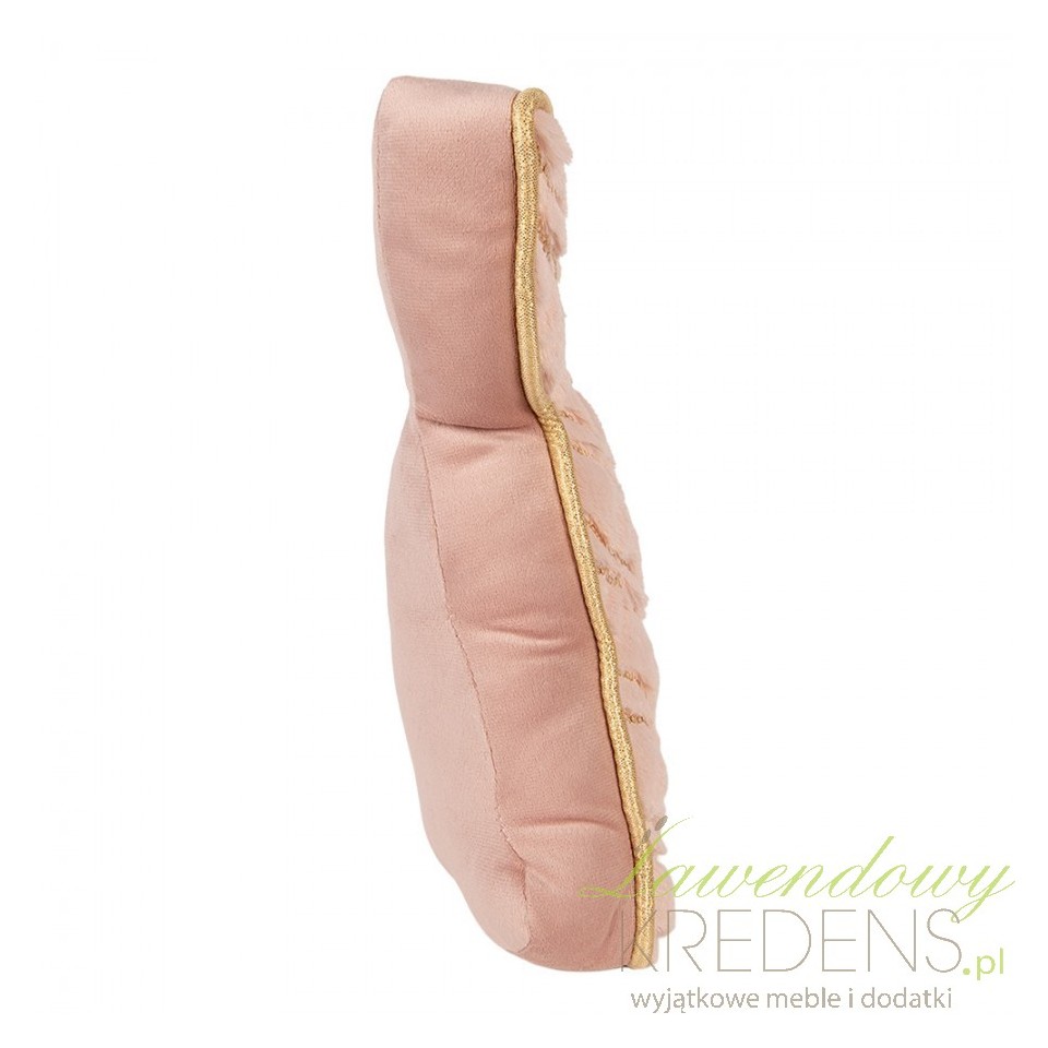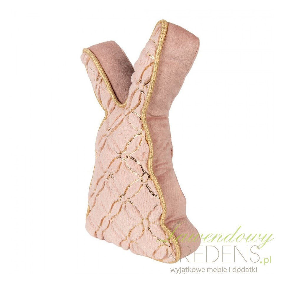 Ten model łączy funkcję z ozdobą: pudrowy róż i złota lamówka wprowadzają elegancki, lekko pałacowy akcent, a przeszycia z połyskującym wzorem dodają efektu glamour. Polecam go do sypialni, garderoby i pokoju dziecka, gdzie liczy się przytulność, miękka faktura i spójna paleta barw. Zając świetnie „domyka” aranżacje z welurem, jasnym drewnem, mosiądzem i pastelami.Ciężarek do drzwi do domu i biura – szybkie ustawienie, mobilność i porządek w komunikacji