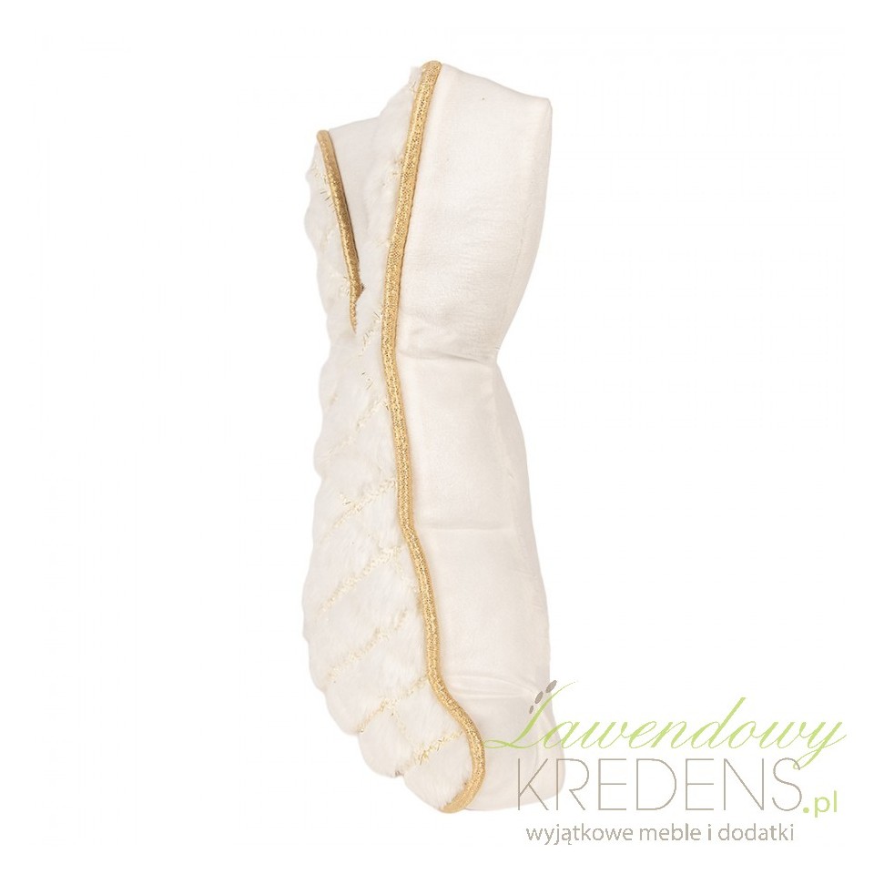 Model C od Clayre & Eef wyróżnia puszysta tekstura i złota lamówka, dzięki którym stoper pełni rolę dekoracji nawet wtedy, gdy drzwi są otwarte. To detal, który pasuje do aranżacji: shabby chic (miękkie tkaniny, jasne barwy, romantyczny sznyt), klasycznego glamour (złote akcenty) oraz przytulnego stylu cottage. Wnoszę go do wnętrza jak rzemieślniczy dodatek: nie dominuje, ale podbija klimat – świetnie wygląda przy białych listwach, wiklinie i naturalnym drewnie.Wysokość dopasowana do codziennego użytkowania – stabilność i wygoda chwytu