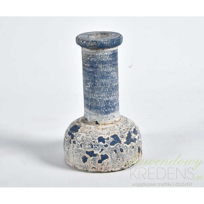 Niewielki, niebieski świecznik Belldeco z kolekcji Roma z nakrapianą białą farbą!