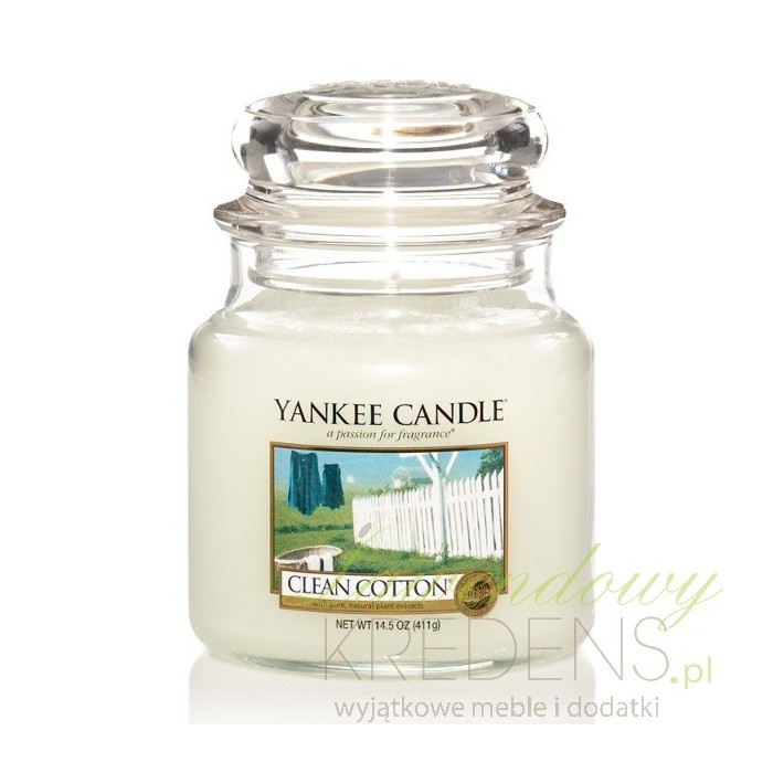 Świeca yankee candle o świeżym zapachu Clean cotton. Świeca, która wprowadzi przytulny i delikatny aromat!