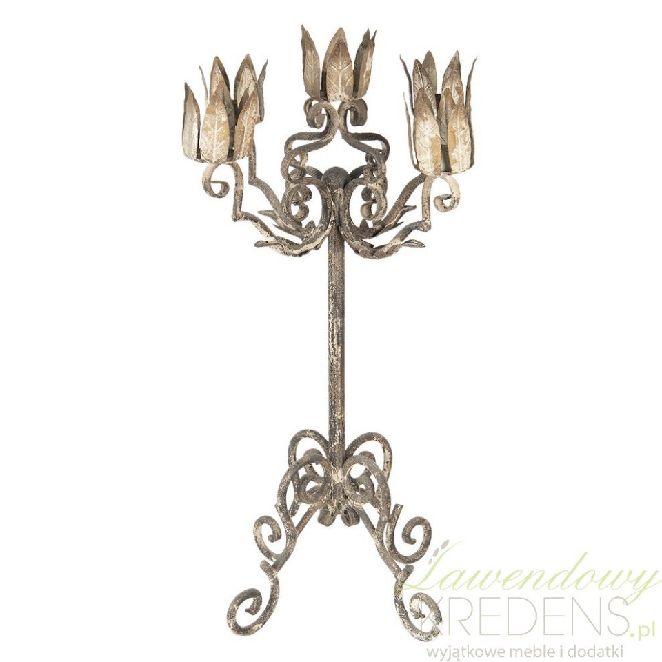 Wieloramienny, wysoki świecznik w stylu prowansalskim z dekoracyjnymi ornamentami sprawi, że każda chwila będzie wyjątkowa!
