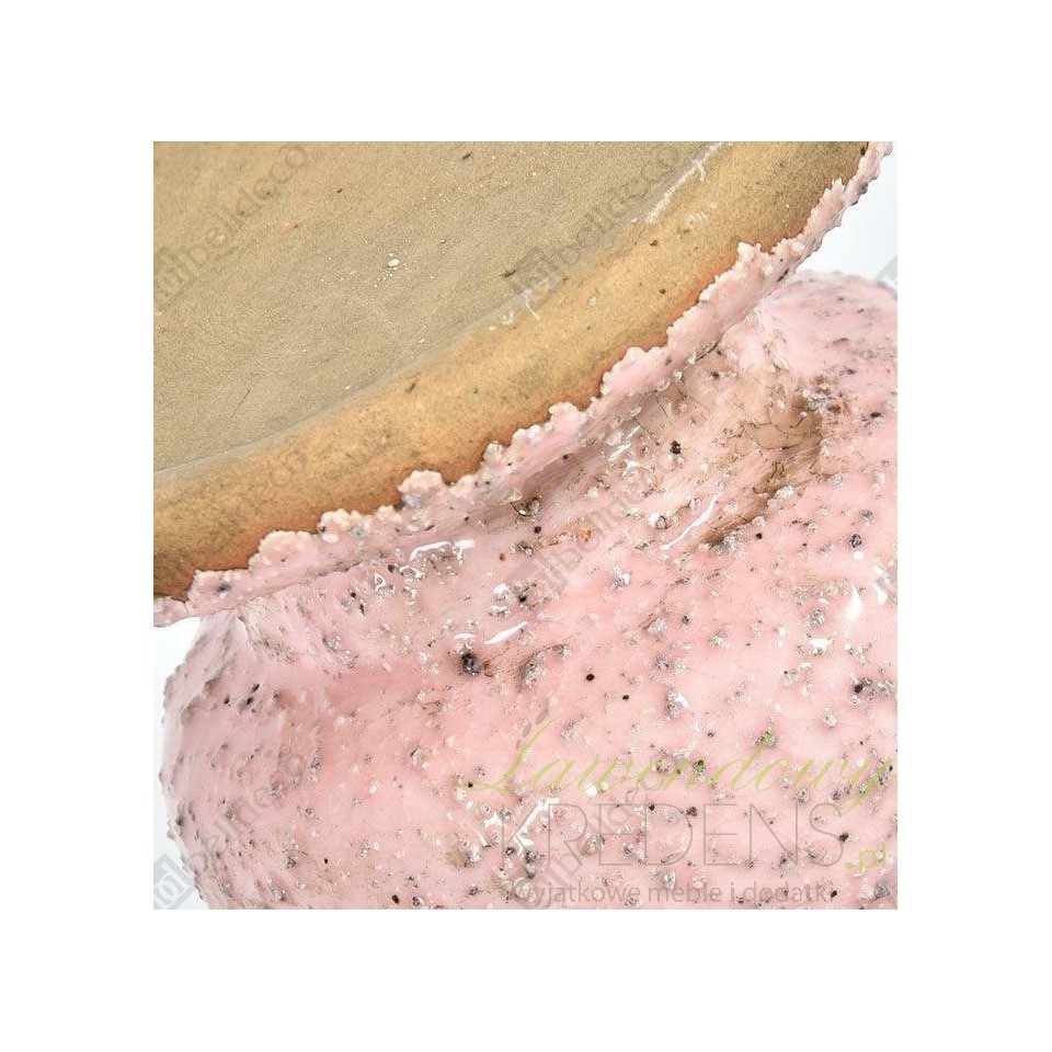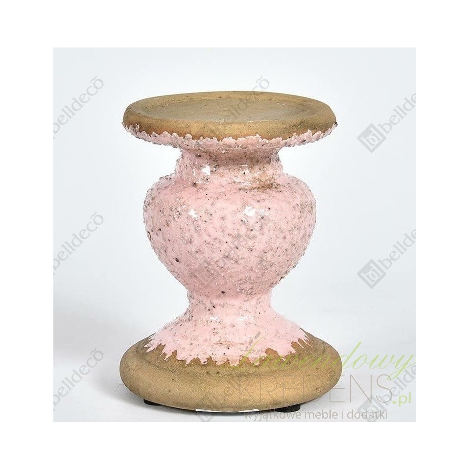 Ceramiczny świecznik Belldeco jest różowo-brązowy, ma chropowatą, pokrytą szkliwioną powłoką powierzchnię i dekoracyjny kształt.