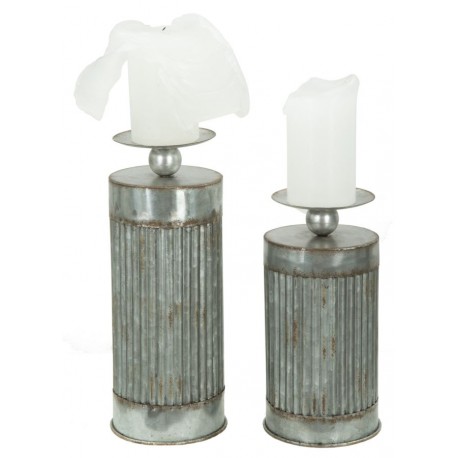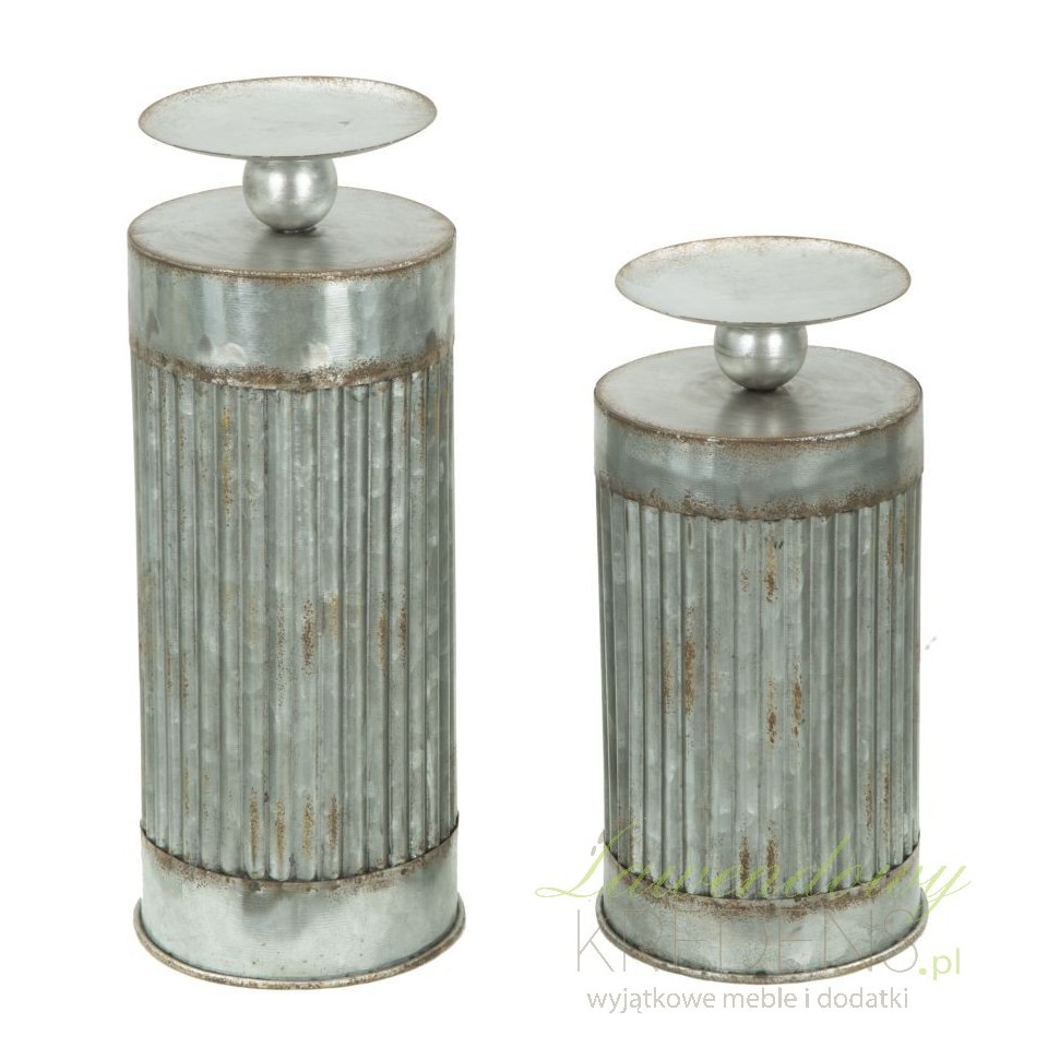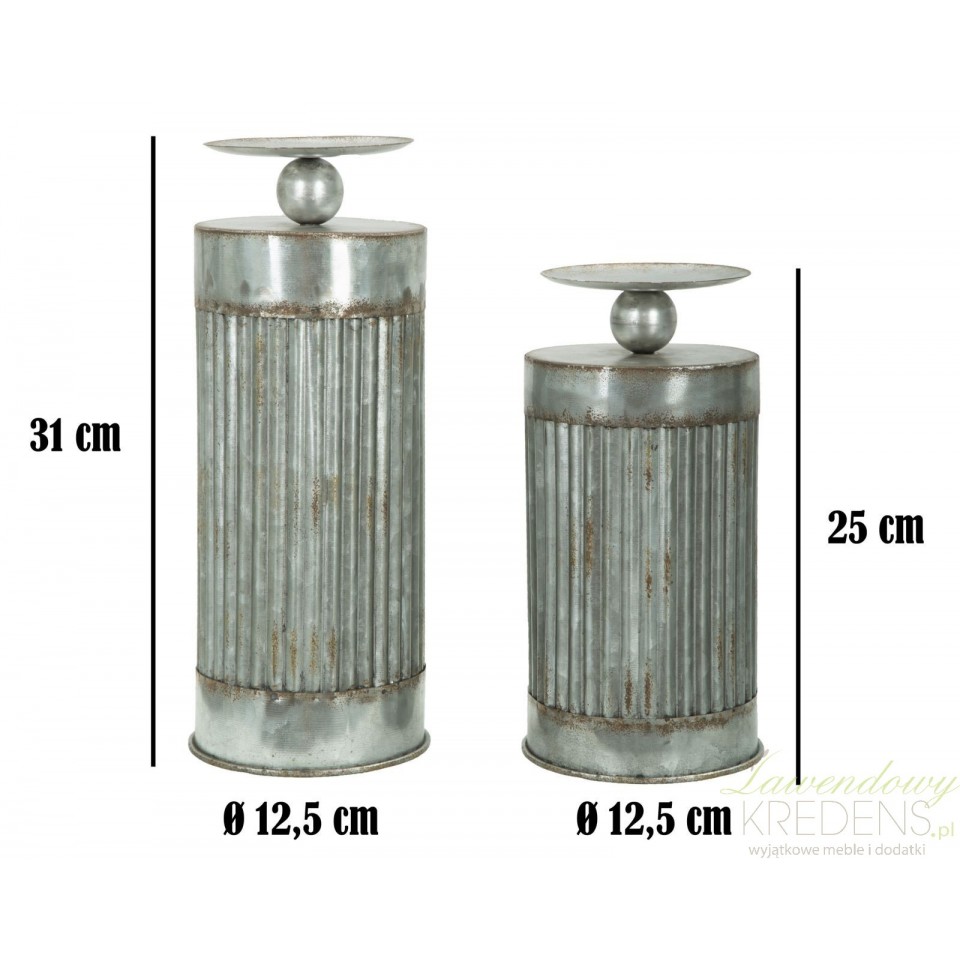 Wysokiej jakości świeczniki w stylu industrialnym na grubej, okrągłej nóżce są zrobione z metalu. Ich prążkowana struktura dzięki postarzeniom sprawia, że to naprawdę niepowtarzalna dekoracja. Zestaw dwóch świeczników podkreśli wyjątkowość każdego spotkania, niezależnie czy umieścisz świeczniki na stole pośród zastawy stołowej czy na komodzie. Industrialne świeczniki polecamy także na prezent dla wyjątkowych osób lubiących niepowtarzalne dekoracje w starym stylu!