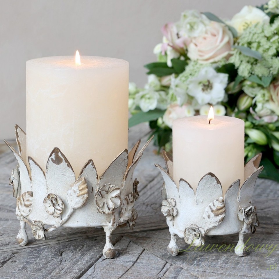 Dodatki do pokoju od Chic Antique takie jak dekoracje w stylu prowansalskim zostały stworzone po to abyś mógł spędzać czas w swoim domu w sposób miły i przyjemny. Przykładem tej wizji jest świecznik w stylu prowansalskim korona, który tworzy postarzana, kremowa podstawa na świecę o średnicy 11 centymetrów. To idealny dodatek do Twojego eklektycznego, eleganckiego lub francuskiego wnętrza, emanujący aurą romantycznej epoki. Dekoracje prowansalskie z pewnością przyciągną wzrok, jako główny element aranżacji lub jako akcent na bocznym stoliku obok sofy.