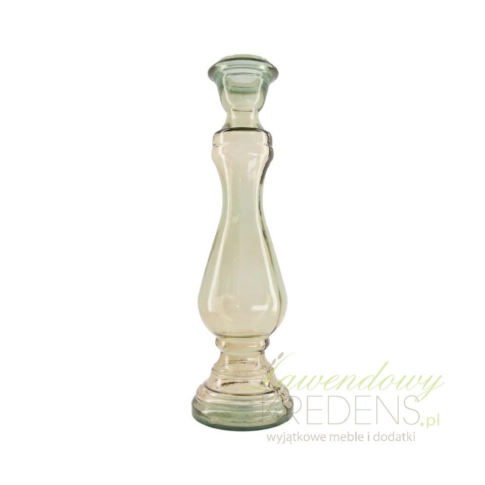 Udekoruj stół w jadalni, konsolę, kominek lub boczny stolik, wybierając szklany świecznik Belldeco Spring bursztynowy.