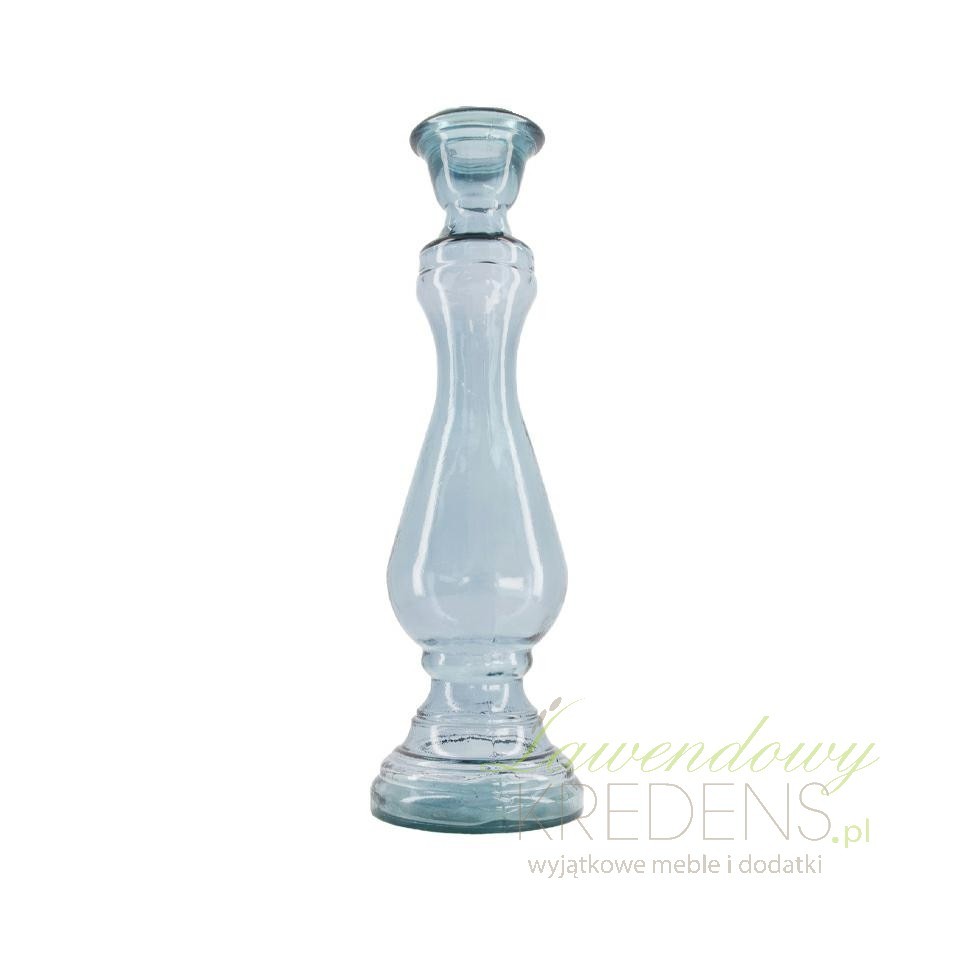 Szklany świecznik Belldeco Spring niebieski będzie nieprzyzwoicie eleganckim dodatkiem do wystroju pokoju, wystarczy że umieścisz go na środku stołu lub komody.
