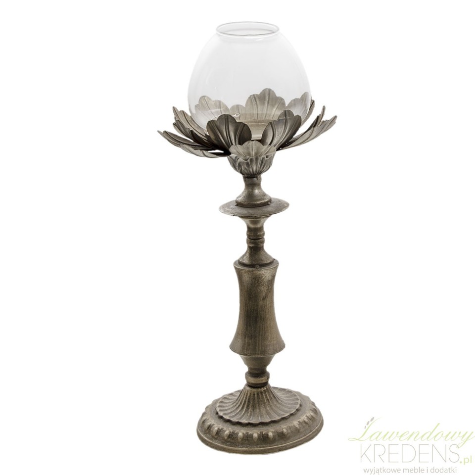 Ozdobne detale w kształcie liści i ciemne, antyczne wykończenie w kolorze starego srebra, sprawiają, że wysokie świeczniki metalowe to dekoracje do domu warte Twojej uwagi. Ten wysoki świecznik metalowy z liśćmi posiada szklane naczynie na świece, dzięki któremu wosk nie będzie ściekał już po nóżce świecznika. Srebrny, wysoki świecznik stołowy najlepiej wygląda pośród innych, stylowych dekoracji na komodzie, na stole lub na szafce w przedpokoju. Wybierz wielozadaniowe, wpływające pozytywnie na atmosferę w każdym wnętrzu – dodatki do pokoju od Clayre & Eef!