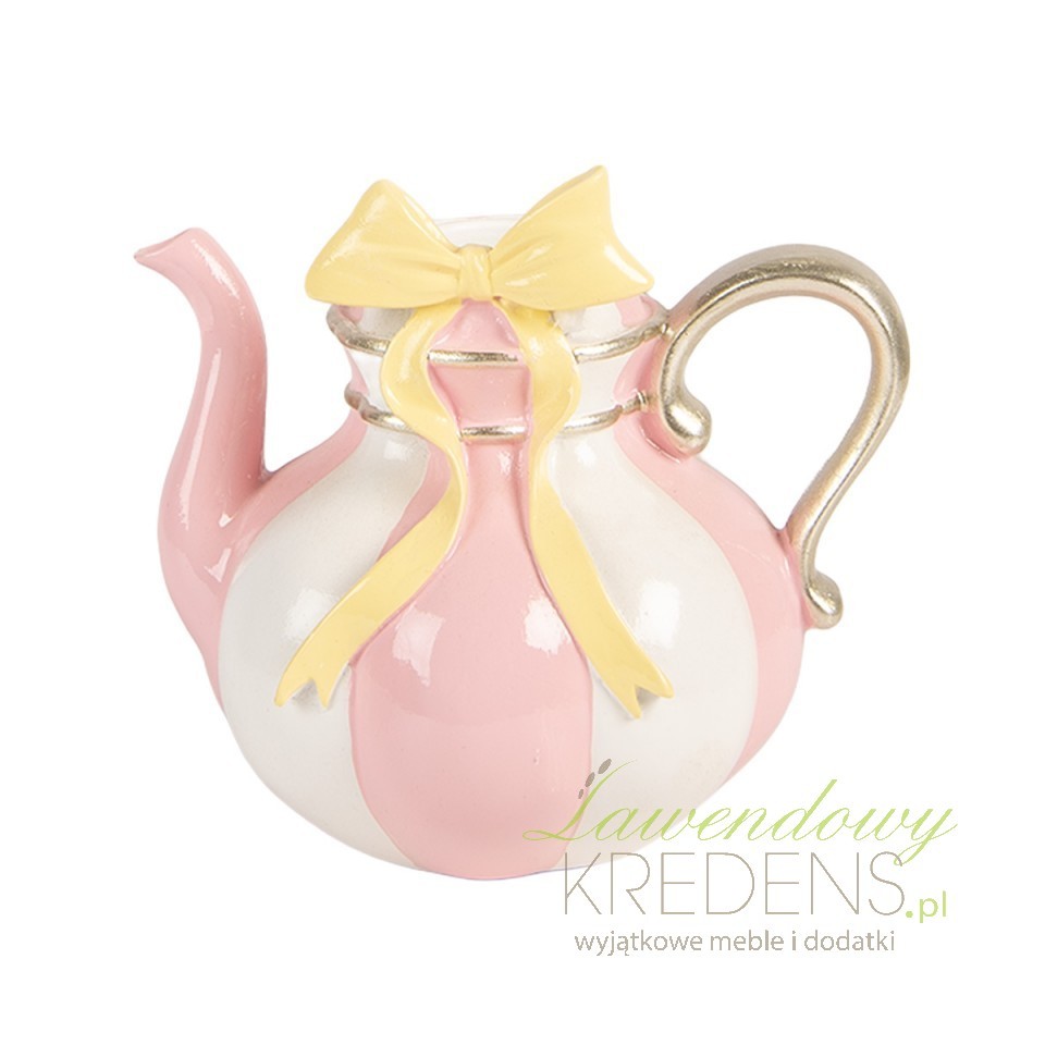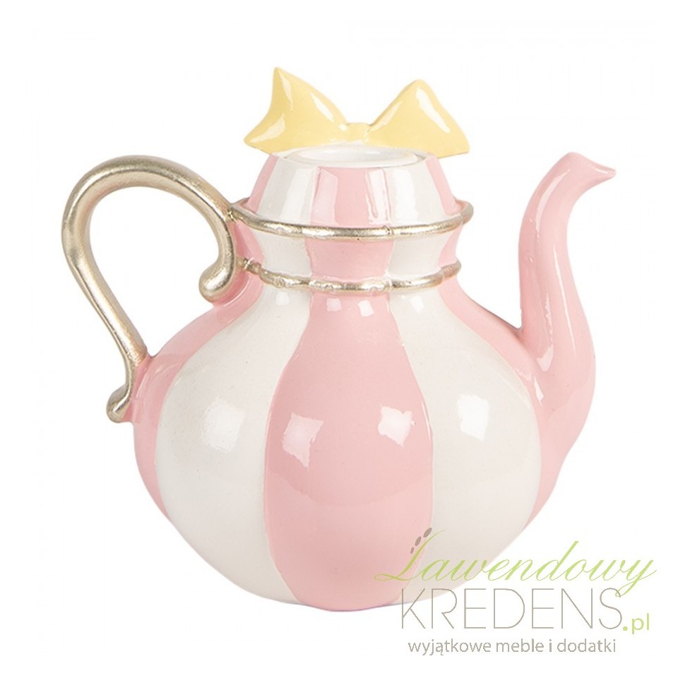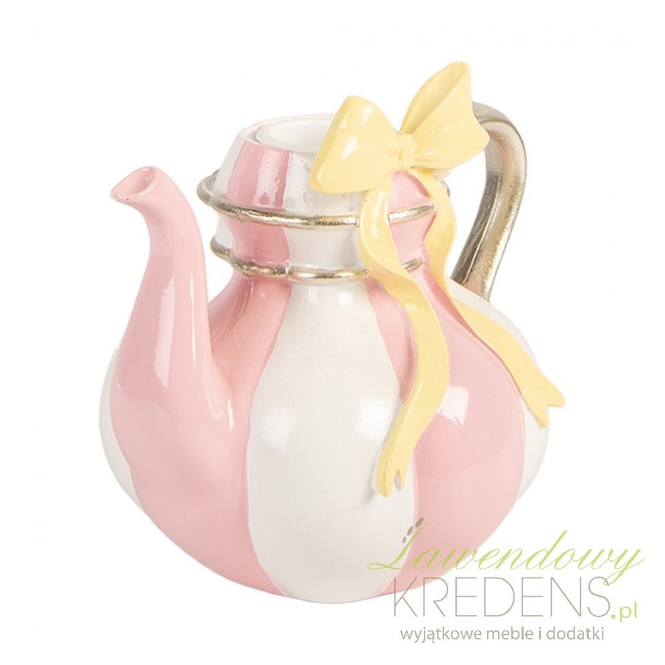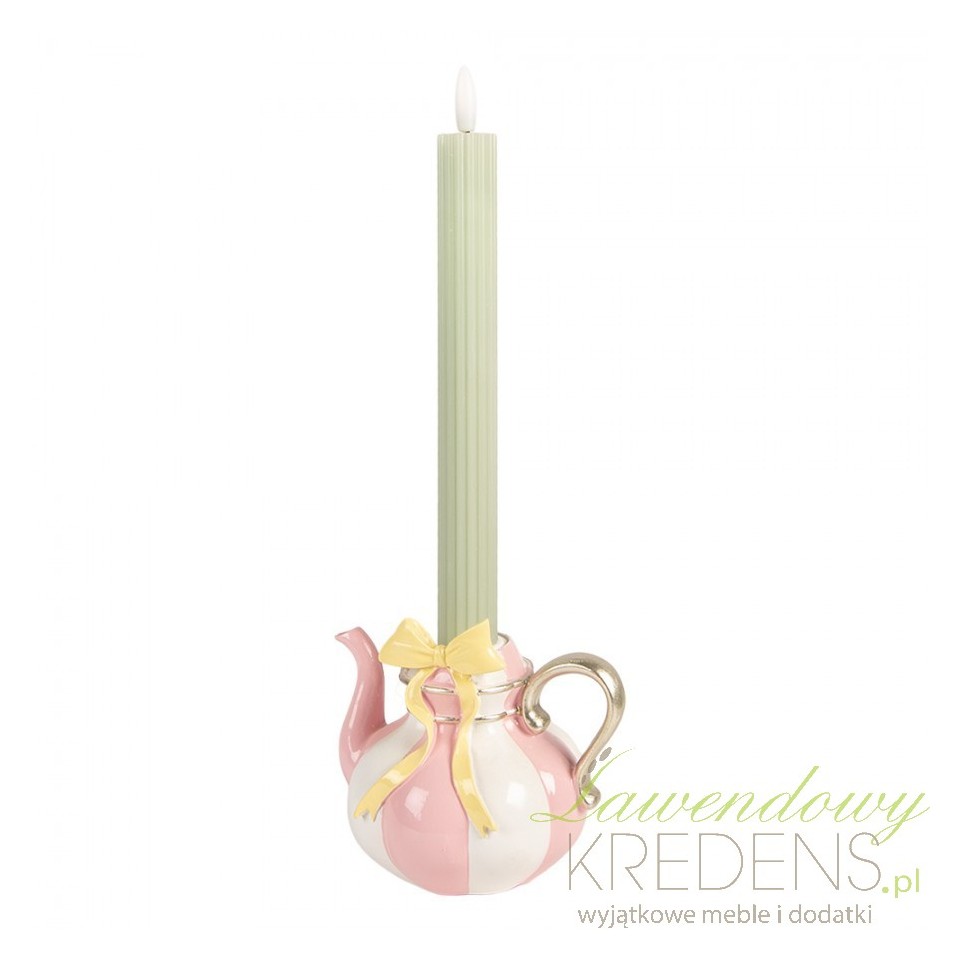 Świecznik w formie pastelowego dzbanka marki Clayre & Eef to dekoracja, która od razu ociepla przestrzeń. Delikatne pasy, subtelne złocenia i kokarda tworzą wrażenie porcelanowej ozdoby w stylu vintage, a motywy króliczków i kwiatów wprowadzają lekkość, idealną na wiosnę i Wielkanoc. To