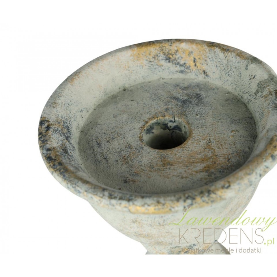 Kielichowa góra pomaga utrzymać świecę stabilnie i ogranicza spływanie wosku. Przy świecach intensywnie „lejących” polecam podłożyć cienką podkładkę lub użyć świecy o dobrej jakości, aby utrzymać czystość kielicha.Jak czyścić powierzchnię z patyną, żeby nie zetrzeć efektu postarzania?