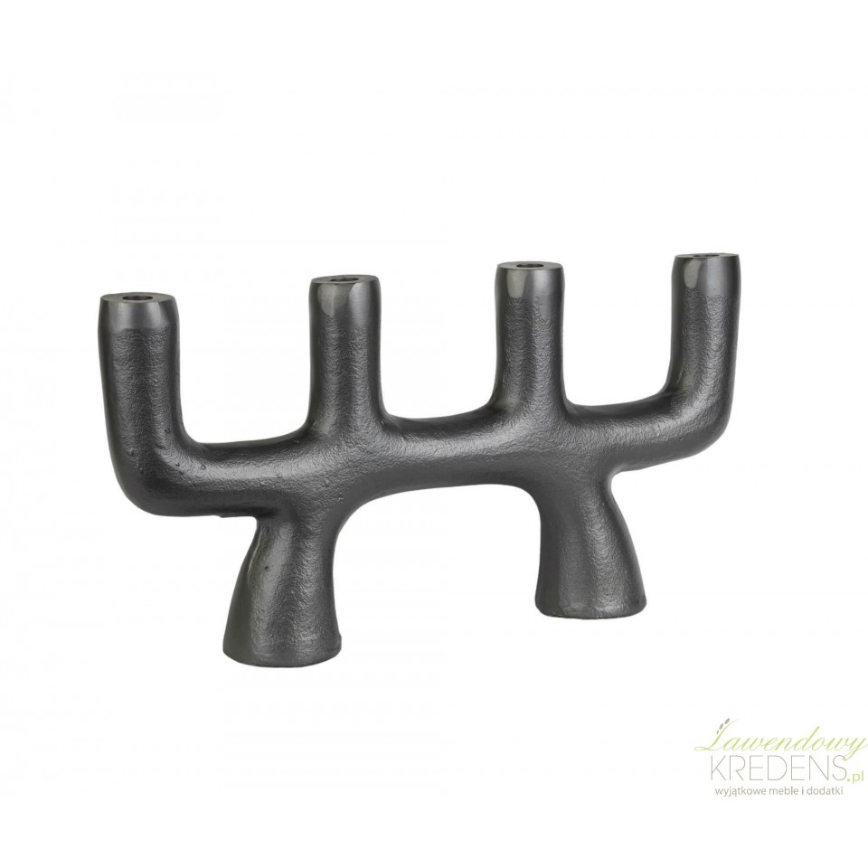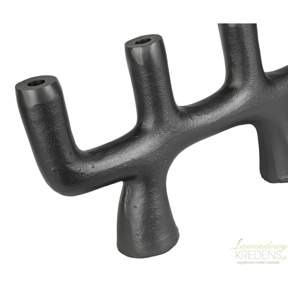 Czarny świecznik z metalu do stołu i komody w stylu industrialnym