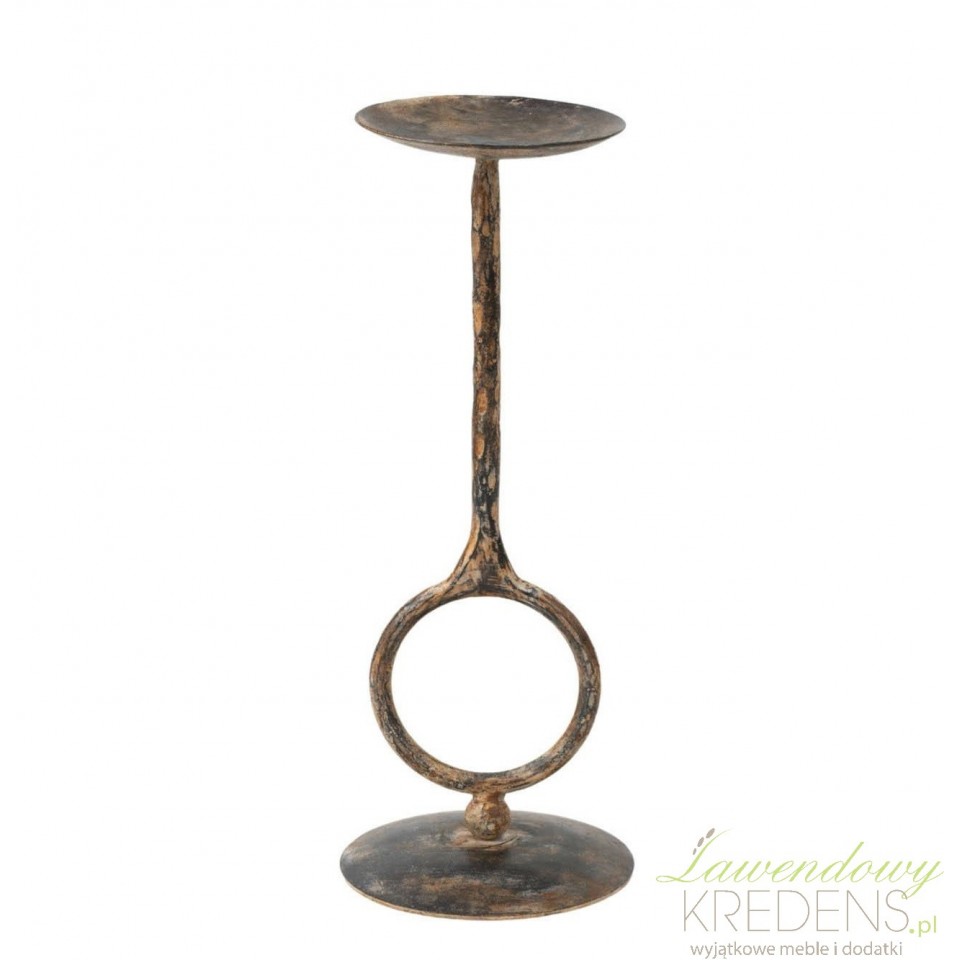 Wysoki świecznik rustykalny z patyną do nastrojowego światła w salonie i jadalni