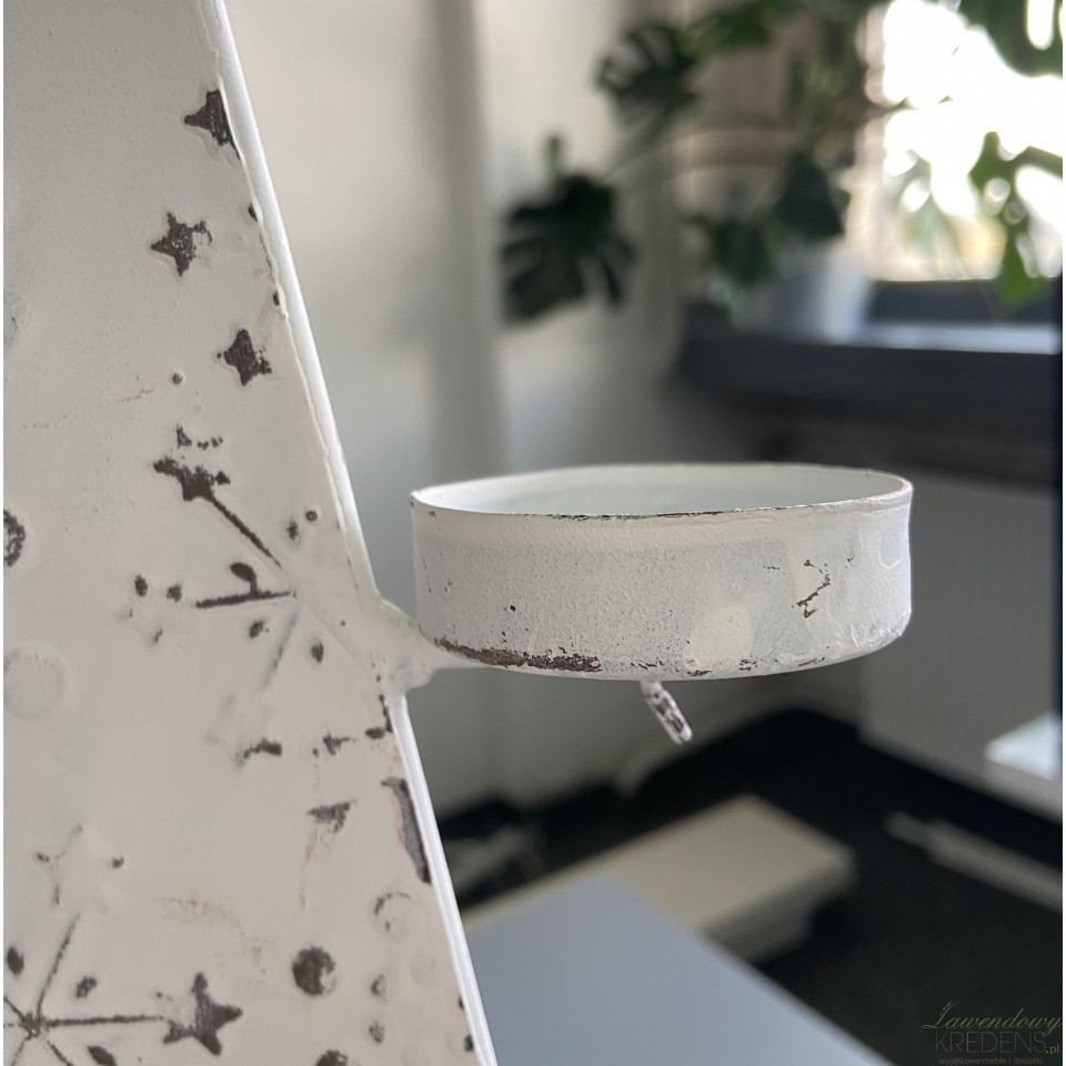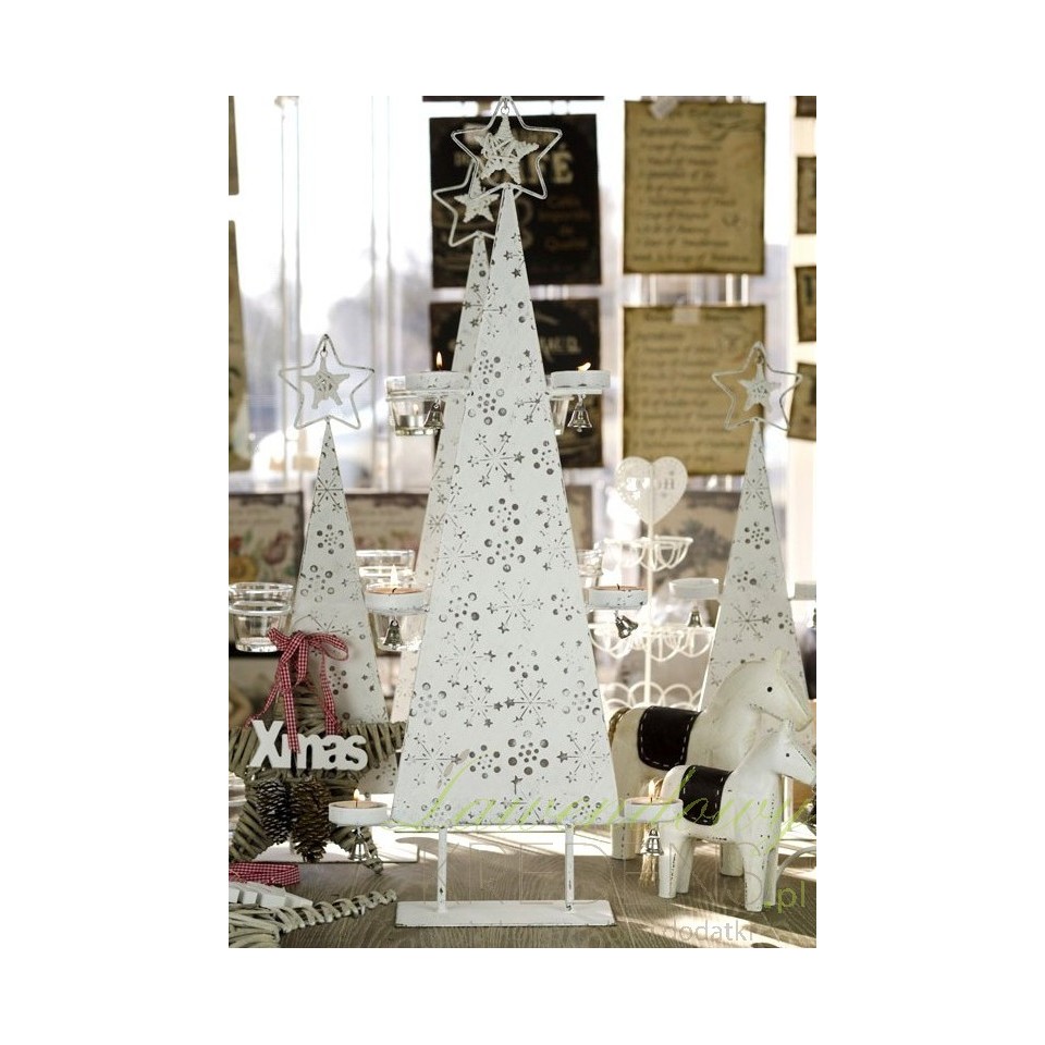 UWAGA! Choinka nie posiada dzwoneczków widocznych na pierwszym zdjęciu oraz jednego miejsca na świeczkę. Uszkodzony egzemplarz widoczny na drugim, trzecim i czwartym zdjęciu.