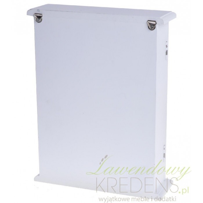 Biała szafka na klucze będzie pasowała na każdą ścianę. Możesz ją zawiesić na dwóch gwoździkach za pomocą dwóch haczyków z tyłu szafki.