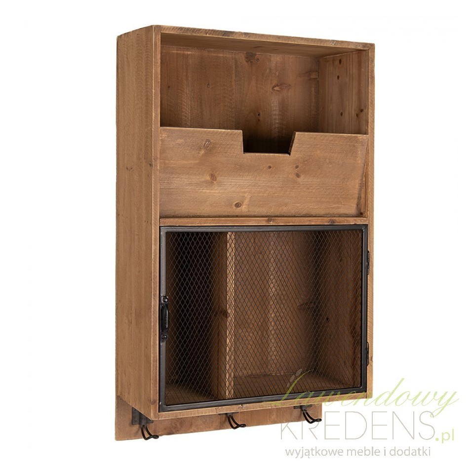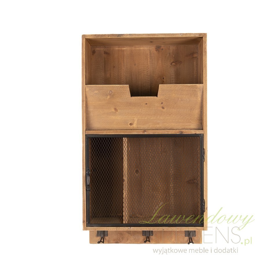 Zaprojektowana z myślą o maksymalnej wygodzie, szafka ścienna z wieszaczkami Clayre & Eef posiada unikalne cechy, które wyróżniają ją spośród innych mebli tego typu. Głównym akcentem jest półka zamykana metalowymi drzwiczkami, których powierzchnię zdobi efektowna siateczka. To nie tylko praktyczny element pozwalający na ukrycie zawartości, ale również designerski detal, który przyciąga uwagę i nadaje meblowi niepowtarzalny charakter.