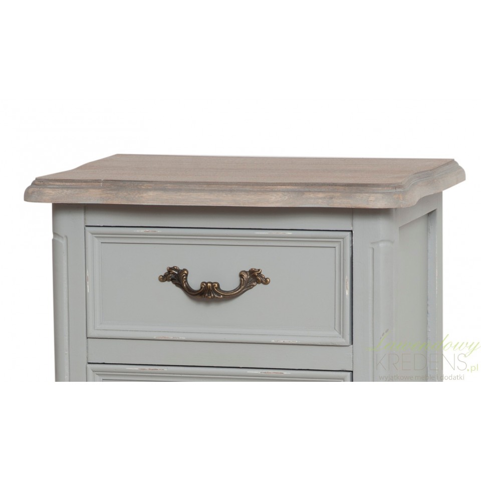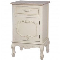Upierający sie na czterech zgrabnie uformowanych nogach stolik nocnyto poręczny stolik z dwiema pojemnymi szufladami, które pozwolą Ci trzymać przy łóżku najpotrzebniejsze rzeczy. Stoliki nocne z tej kolekcji to funkcjonalne meble prowansalskie, które z powodzeniem można wykorzystać jako stoliczki do przedpokoju czy salonu!
