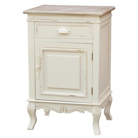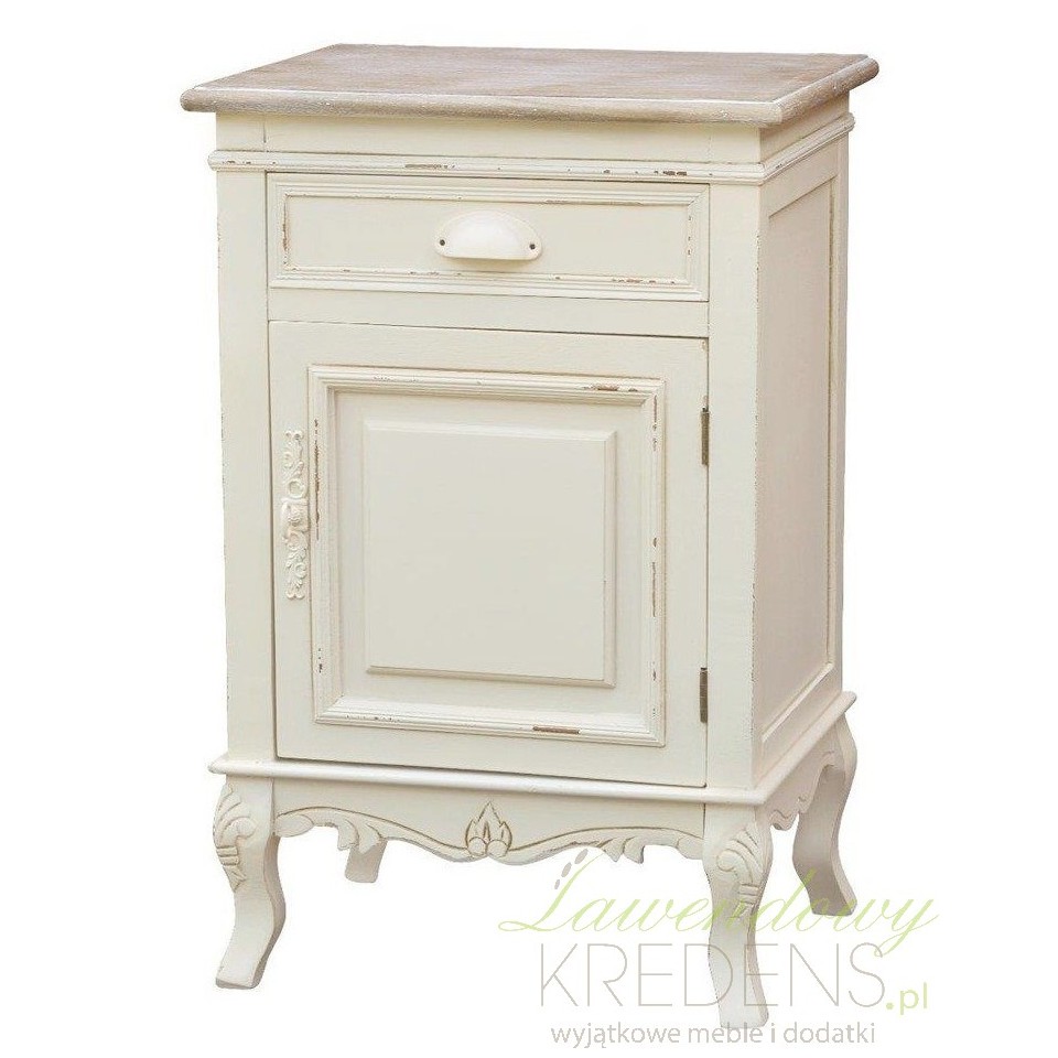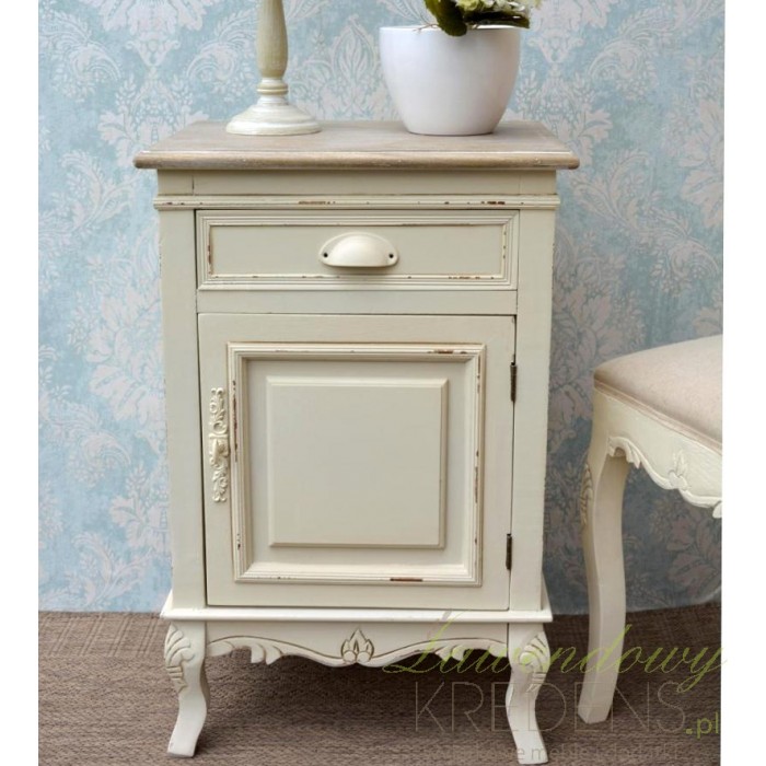 Kremowa szafka nocna w stylu prowansalskim z kolekcji Rimini z otwieraną szafeczką i szufladką!