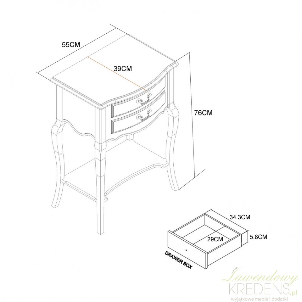 Odśwież swoją sypialnię dzięki tej pięknej szafce z kolekcji Limena. Idealny do przechowywania i eksponowania przedmiotów, ten stolik w stylu prowansalskim ma niepowtarzalny styl z połowy wieku i pozwala na wyeksponowanie różnych artykułów niezbędnych obok łóżka. Drewniany stolik nocny posiada dwie szuflady i półkę, co daje więcej niż wystarczająco dużo miejsca do przechowywania. Meble Limena to idealny dodatek do przestrzeni każdej sypialni.