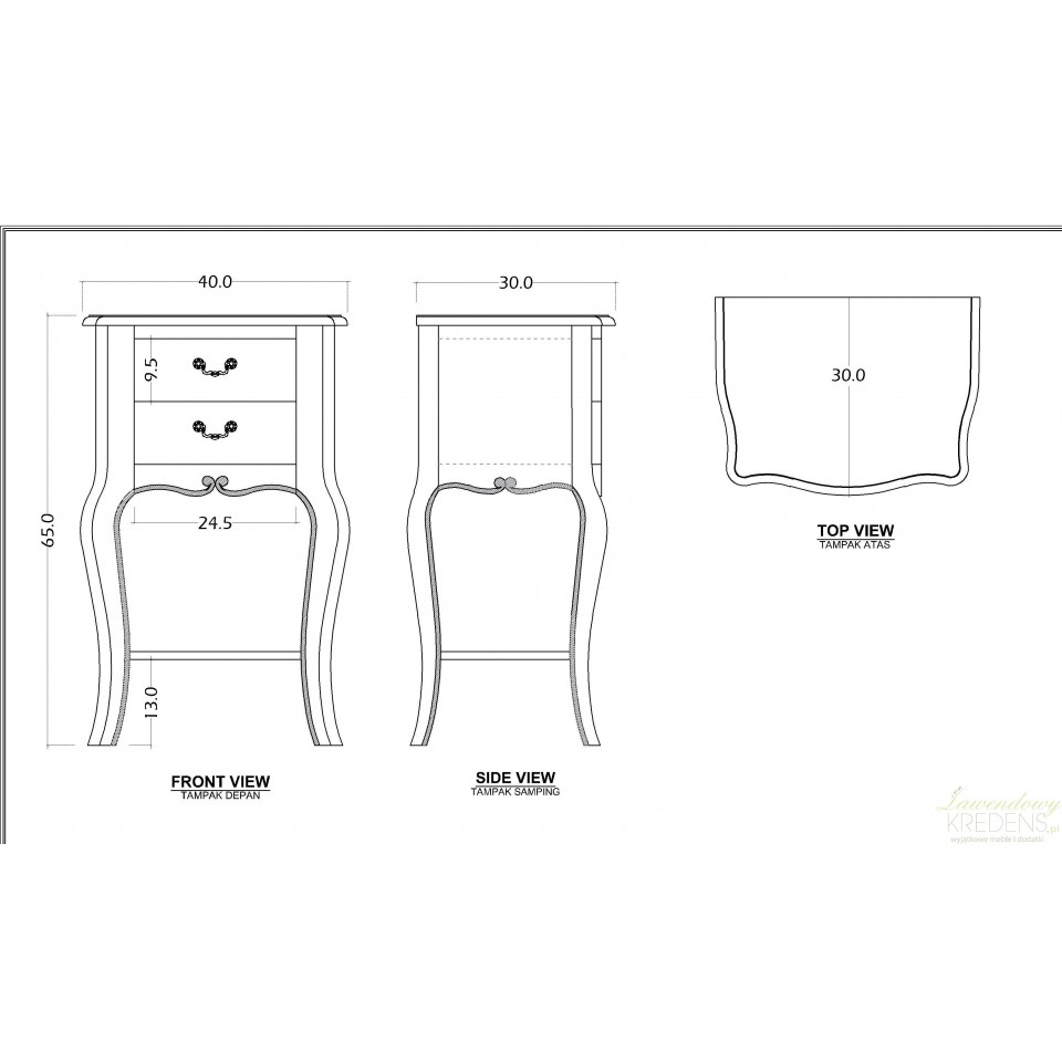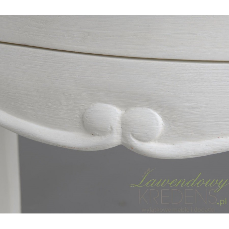 Francuska marka stworzyła stolik nocny w stylu francuskim Apolla, wyposażając go w parę pojemnych szufladek, półkę oraz eleganckie nóżki. Mebel ma urocze wykończenie i doskonałe proporcje, dzięki czemu możesz swobodnie wykorzystać go nie tylko w sypialni. Uważamy, że nasze szykowne meble w stylu francuskim będą wyglądały pięknie w połączeniu z łądnymi akcesoriami, zielonymi kwiatami i królewskimi tekstyliami. Jasna kolorystyka i skromna konstrukcja stolika sprawiają, że nie dominuje on w pomieszczeniu, ale jest praktycznym i eleganckim dodatkiem.