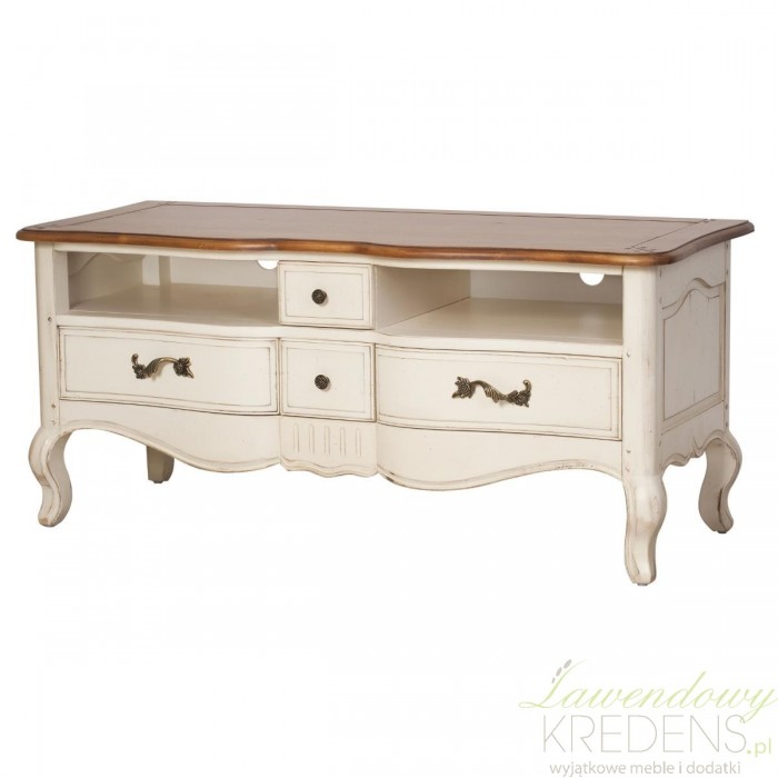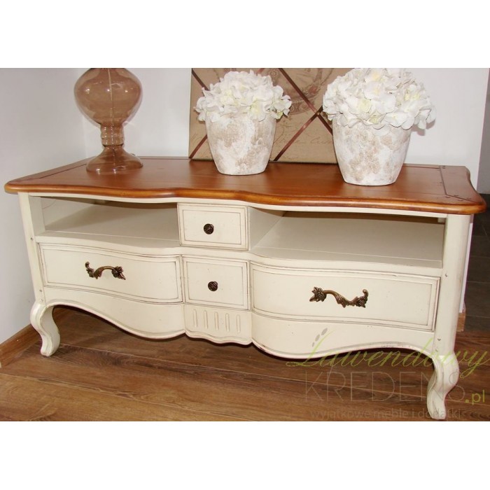 Wykonana z drewna, magiczna komoda RTV w stylu francuskim z kolekcji Verona idealna do eleganckich wnętrz!